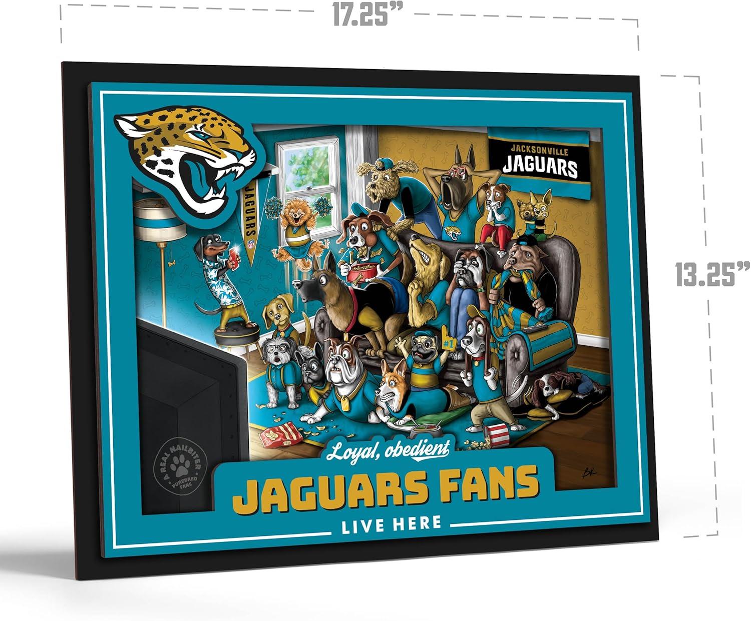 YouTheFan Officially-licensed NFL Purebred 3D Wall Art – Humorous original hand-drawn cartoon artwork, multi-layer, funny gift, indoor team decor(Jacksonville Jaguars)