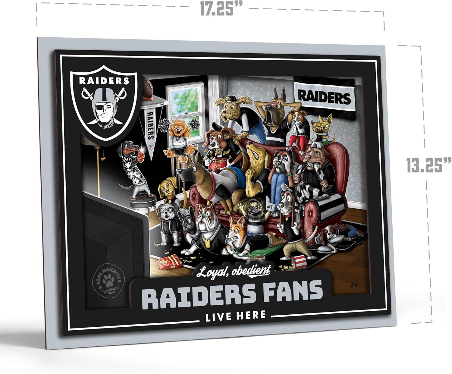 YouTheFan Officially-licensed NFL Purebred 3D Wall Art – Humorous original hand-drawn cartoon artwork, multi-layer, funny gift, indoor team decor(Las Vegas Raiders)