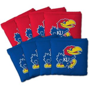 YouTheFan Officially-Licensed NCAA Set of 8 Cornhole Bags – All Weather Dual Sided Slide & Stop – Regulation Size with Carry case(Kansas Jayhawks)