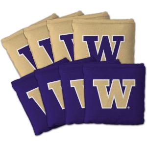YouTheFan Officially-Licensed NCAA Set of 8 Cornhole Bags – All Weather Dual Sided Slide & Stop – Regulation Size with Carry case(Washington Huskies)