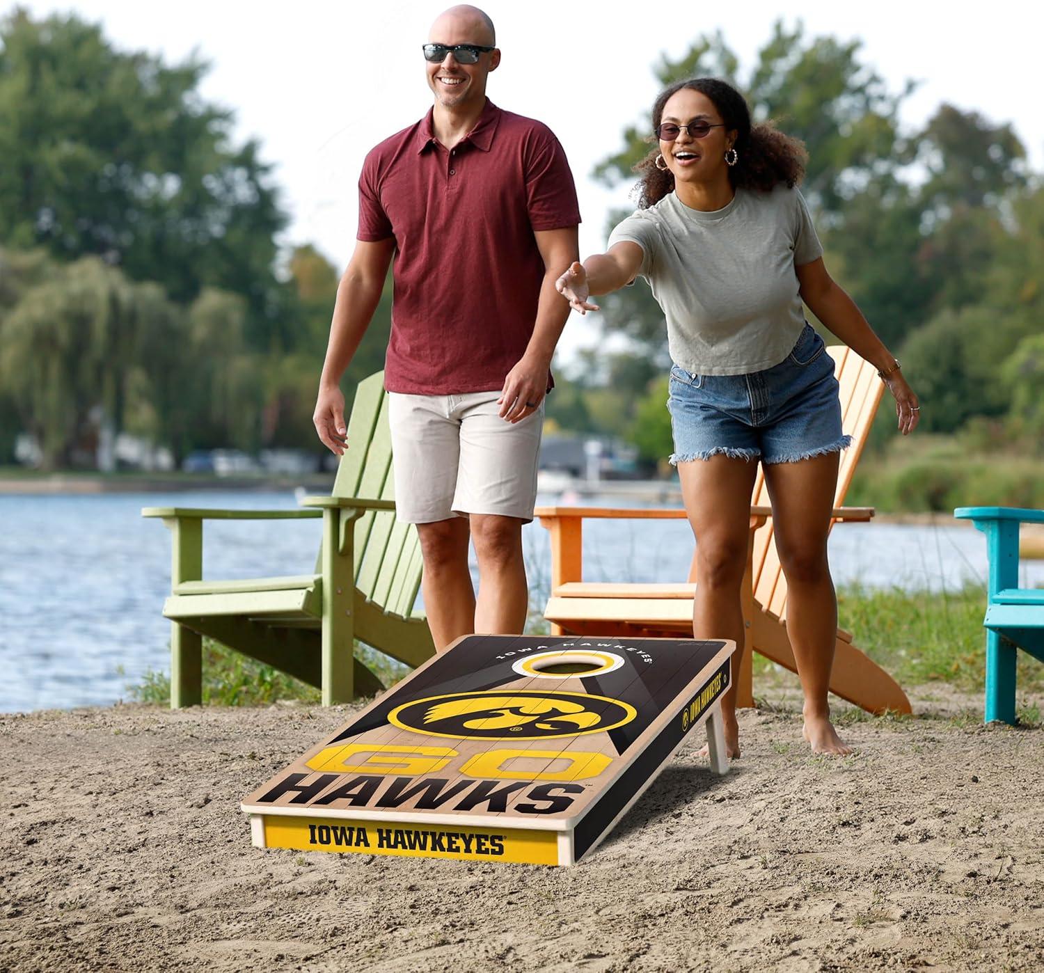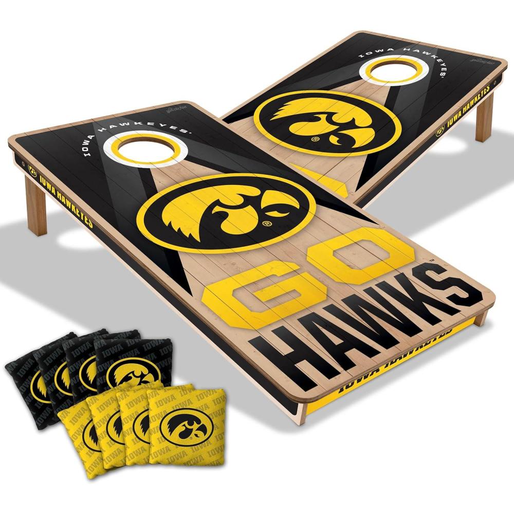 YouTheFan NCAA 2′ x 4′ Slogan Series Professional Wood Cornhole Game with Logo Bags(Iowa Hawkeyes)