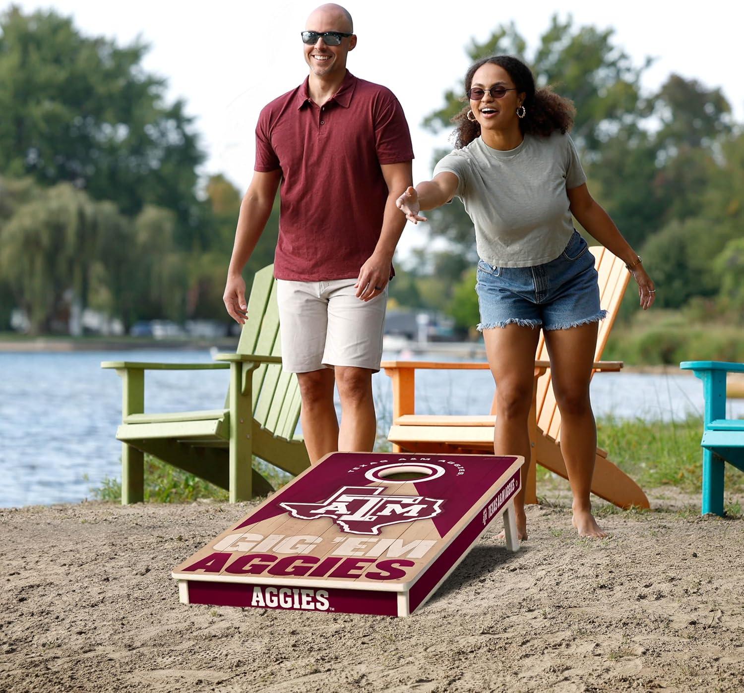 YouTheFan NCAA 2′ x 4′ Slogan Series Professional Wood Cornhole Game with Logo Bags(Texas A&M Aggies)