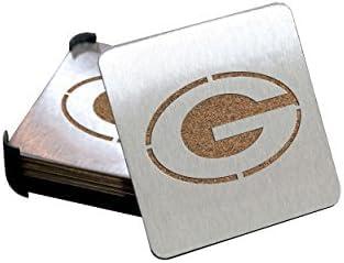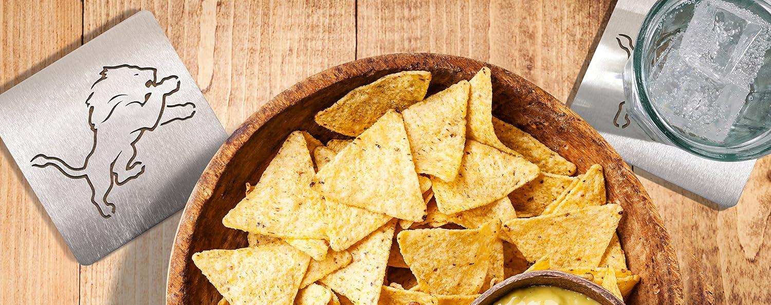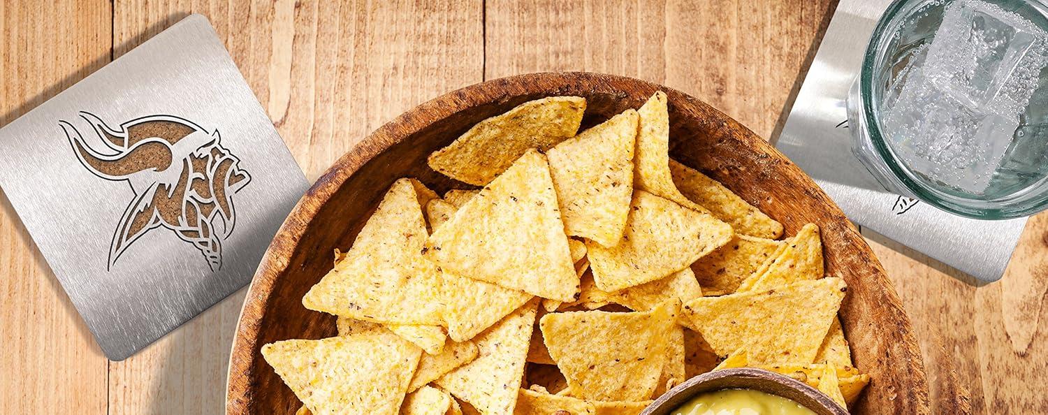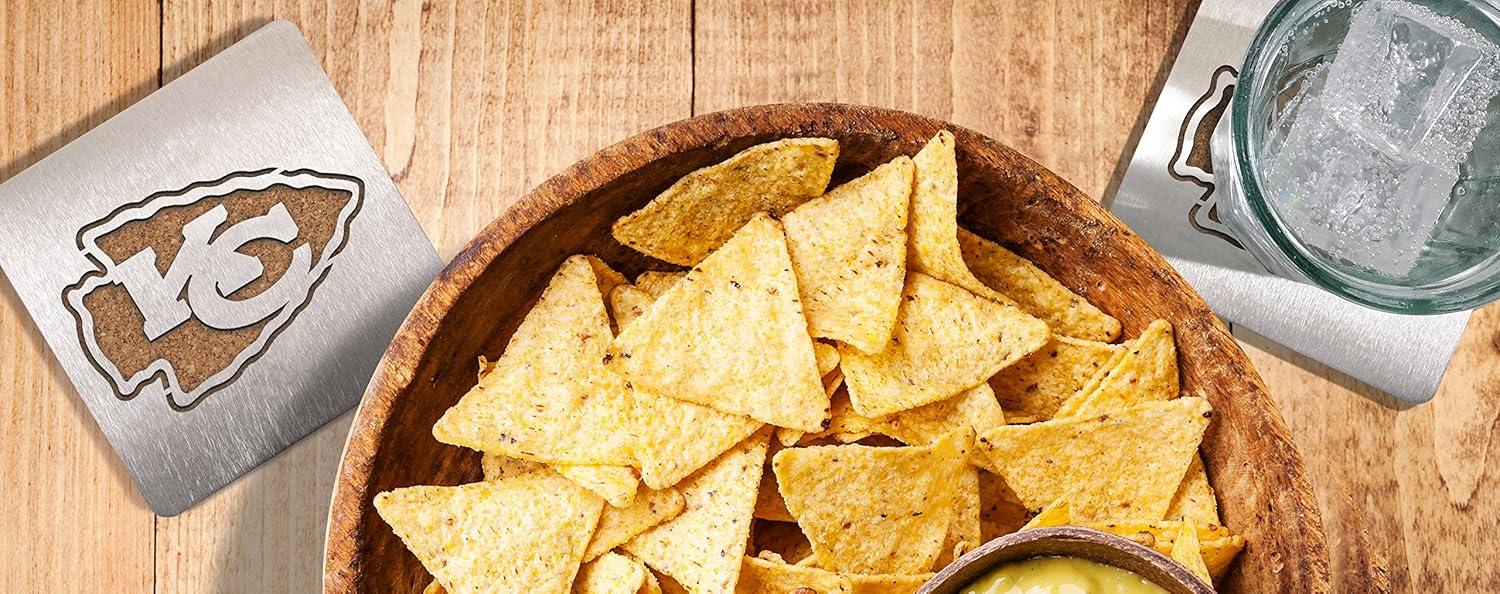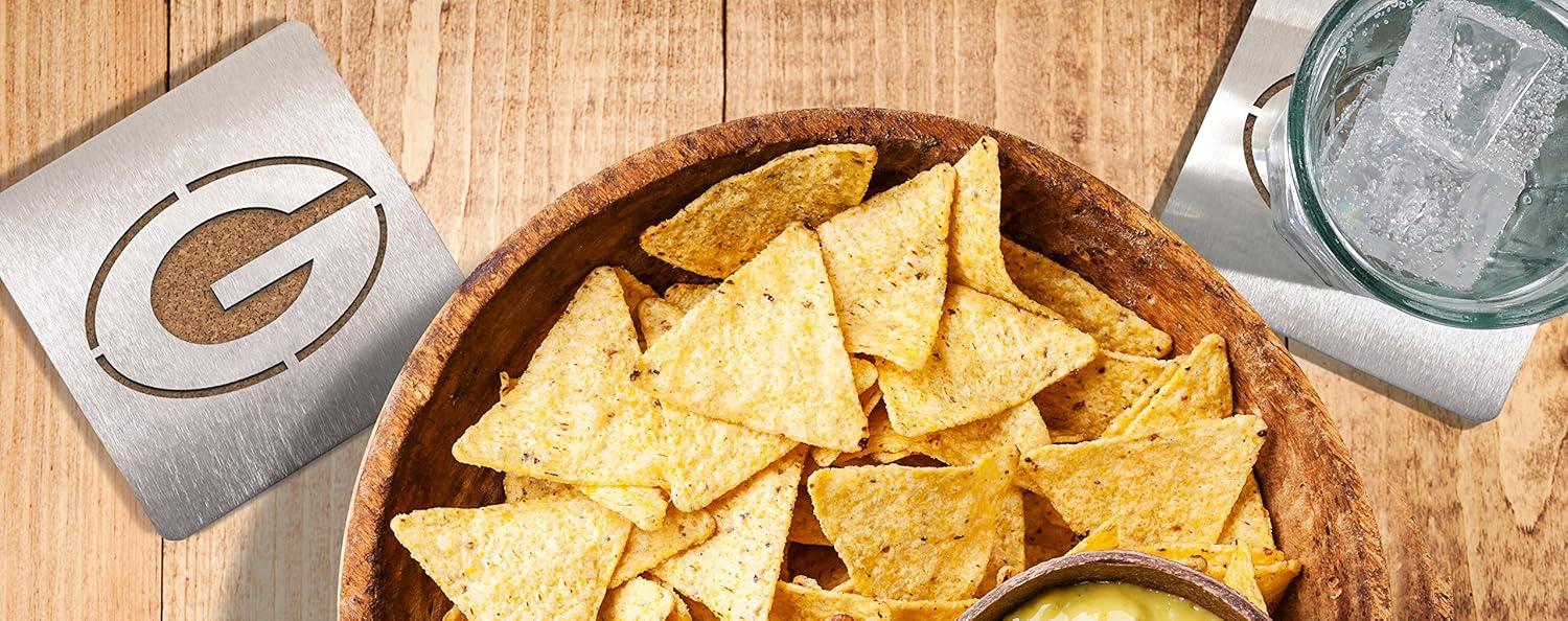 Save your table and show your pride with a 4-piece set of Chicago Bears Sportula Boasters. These heavy-duty stainless steel drink coasters sport a laser-cut Bears logo and a strong cork backing. Great for fan caves and sports bars.