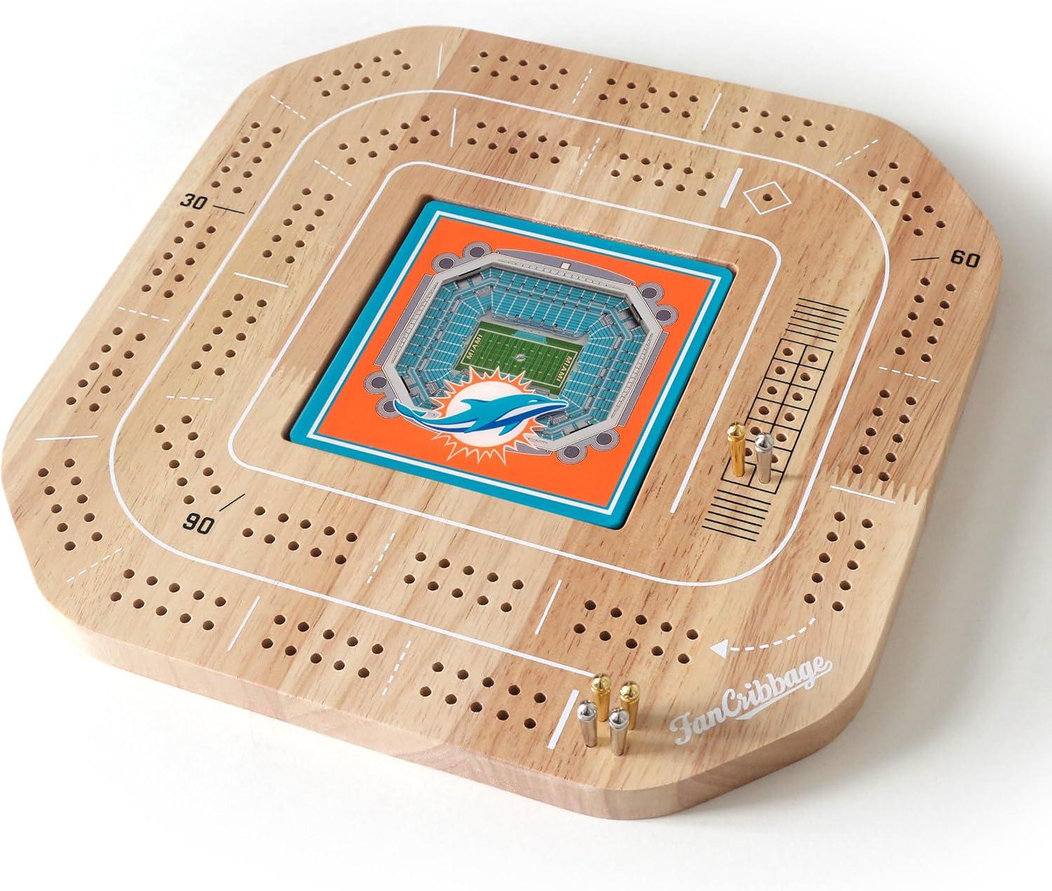 YouTheFan NFL Licensed Fan Cribbage Wood Board Game(Miami Dolphins)