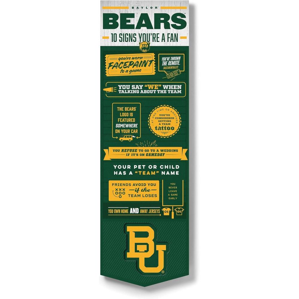 YouTheFan Officially-licensed NCAA 6×19 Top 10 Signs Banner – humorous descriptions – fun sports fan phrases, original design, indoor team wall decor fan gift(Baylor Bears)