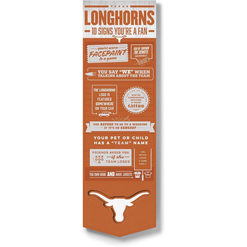 YouTheFan Officially-licensed NCAA 6×19 Top 10 Signs Banner – humorous descriptions – fun sports fan phrases, original design, indoor team wall decor fan gift(Texas Longhorns)