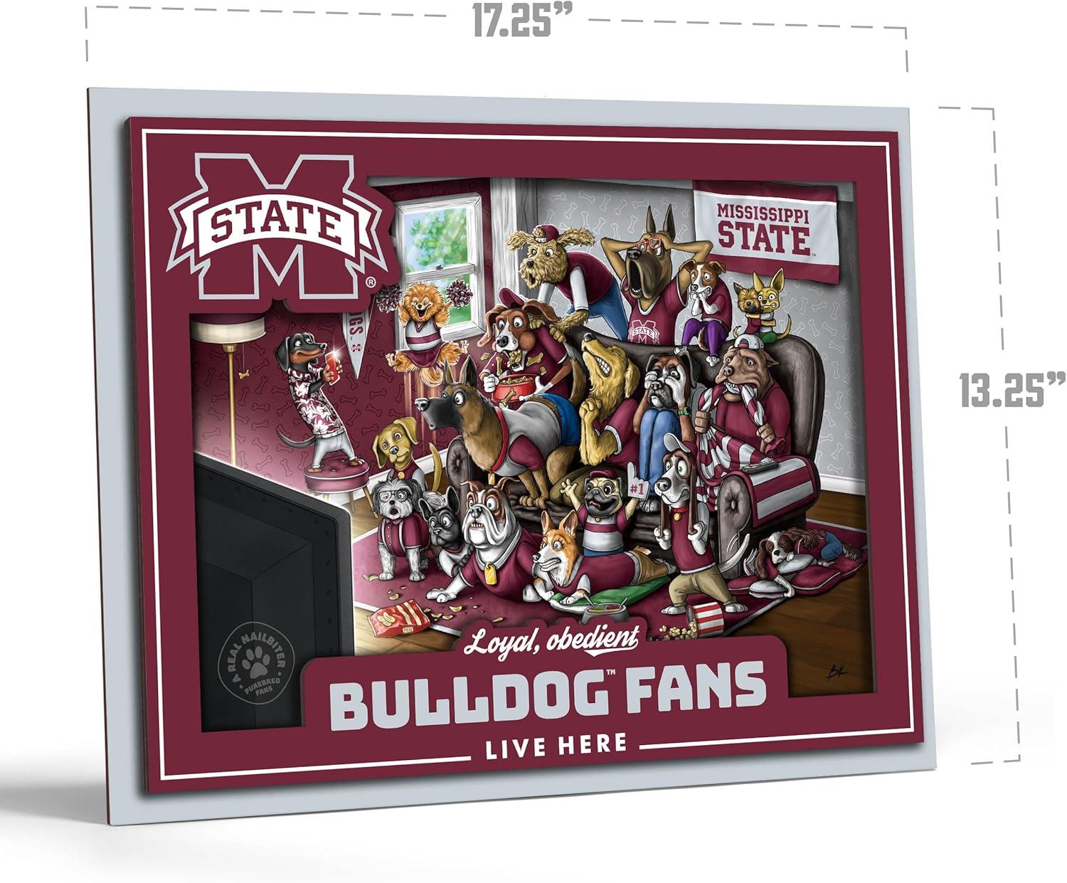 YouTheFan Officially-licensed NCAA Purebred 3D Wall Art – Humorous original hand-drawn cartoon artwork, multi-layer, funny gift, indoor team decor(Mississippi State Bulldogs)