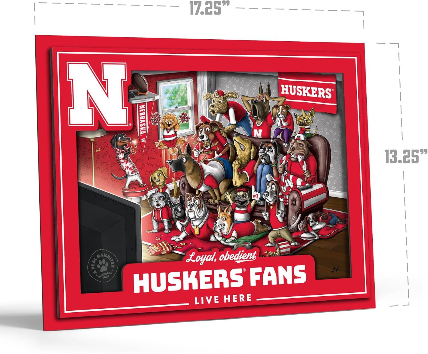 YouTheFan Officially-licensed NCAA Purebred 3D Wall Art – Humorous original hand-drawn cartoon artwork, multi-layer, funny gift, indoor team decor(Nebraska Cornhuskers)
