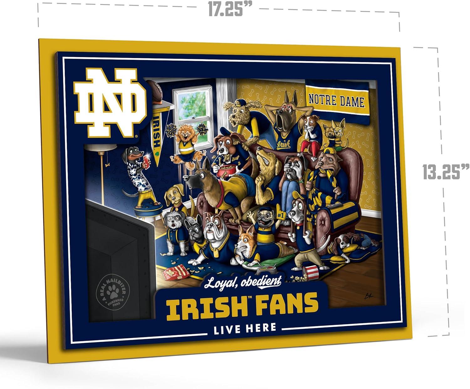 YouTheFan Officially-licensed NCAA Purebred 3D Wall Art – Humorous original hand-drawn cartoon artwork, multi-layer, funny gift, indoor team decor(Notre Dame Fighting Irish)