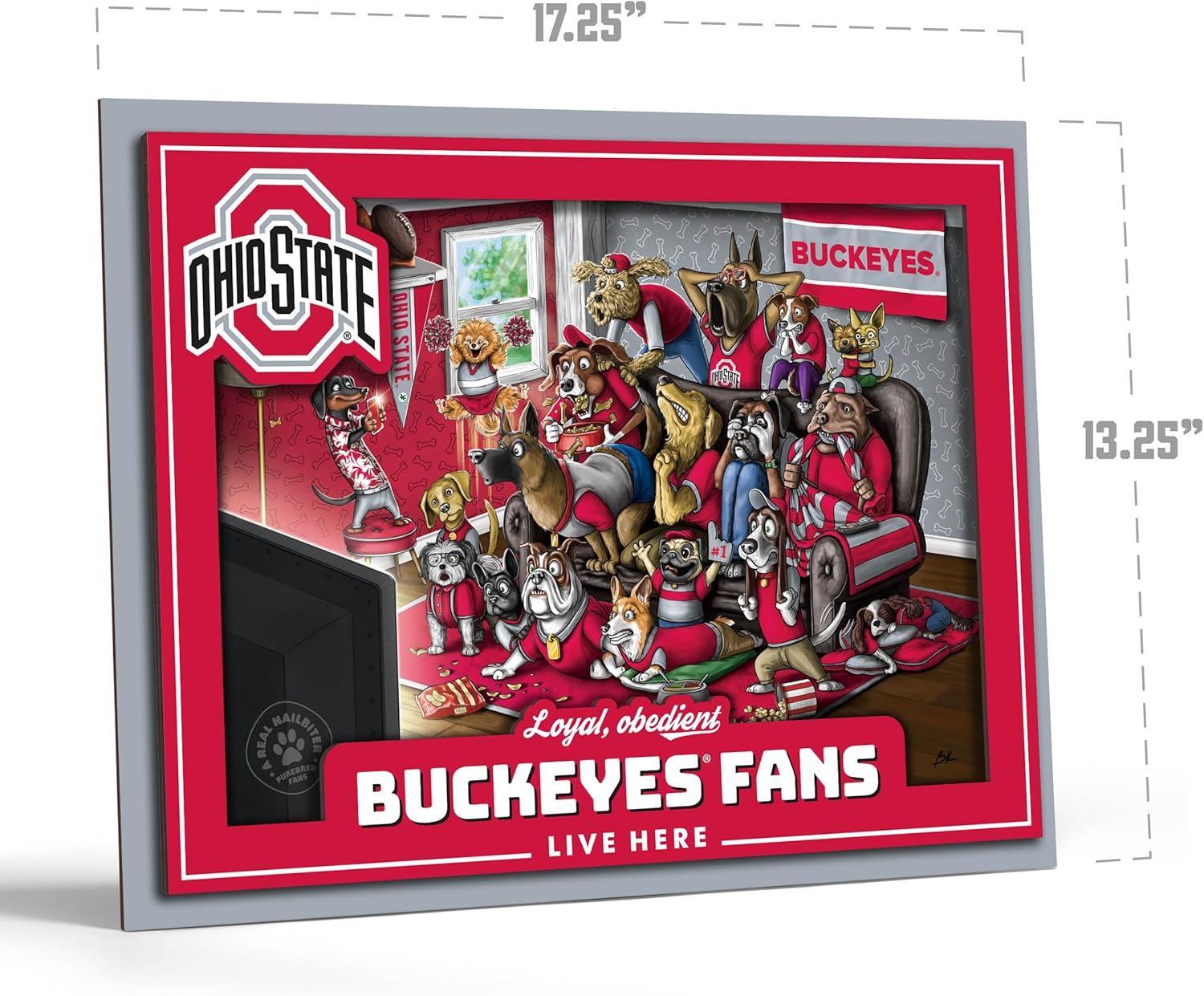 YouTheFan Officially-licensed NCAA Purebred 3D Wall Art – Humorous original hand-drawn cartoon artwork, multi-layer, funny gift, indoor team decor(Ohio State Buckeyes)