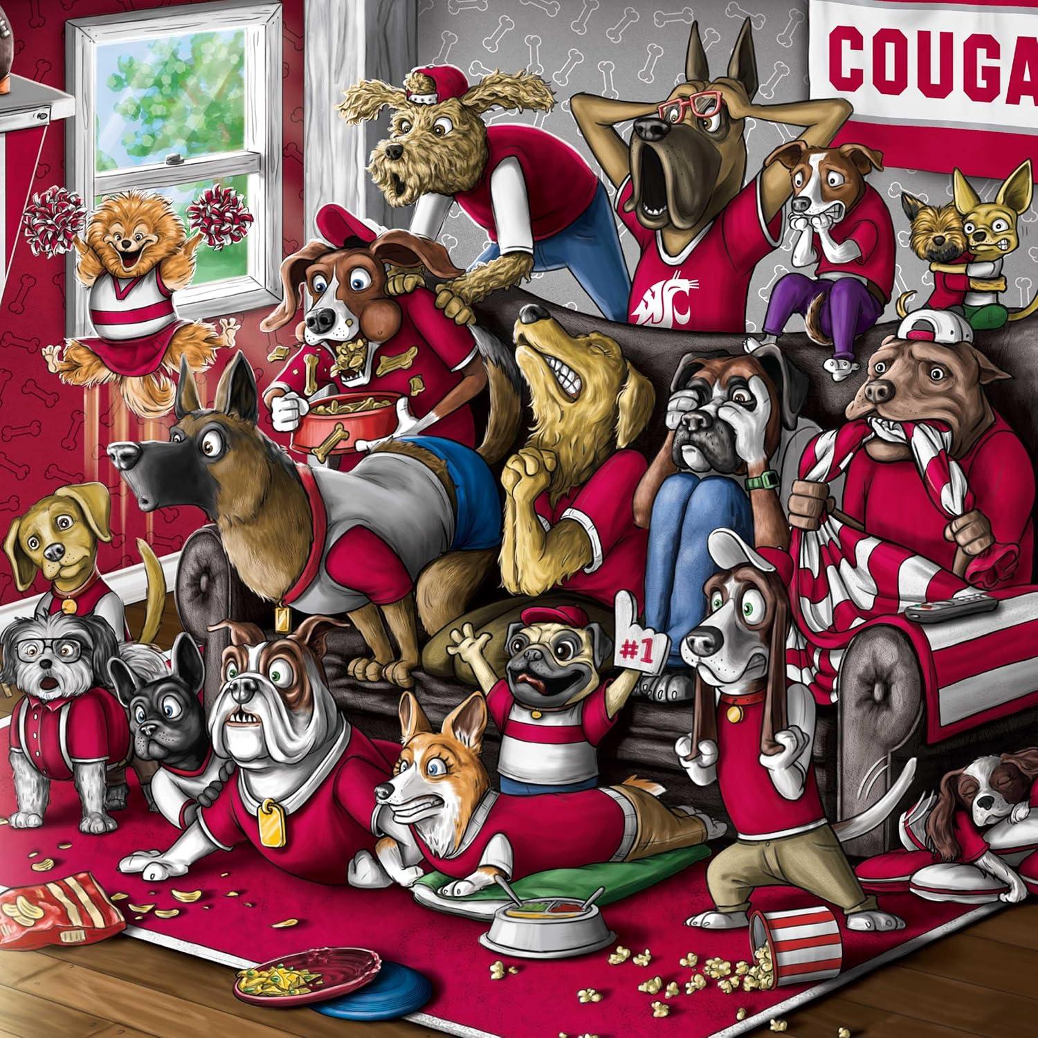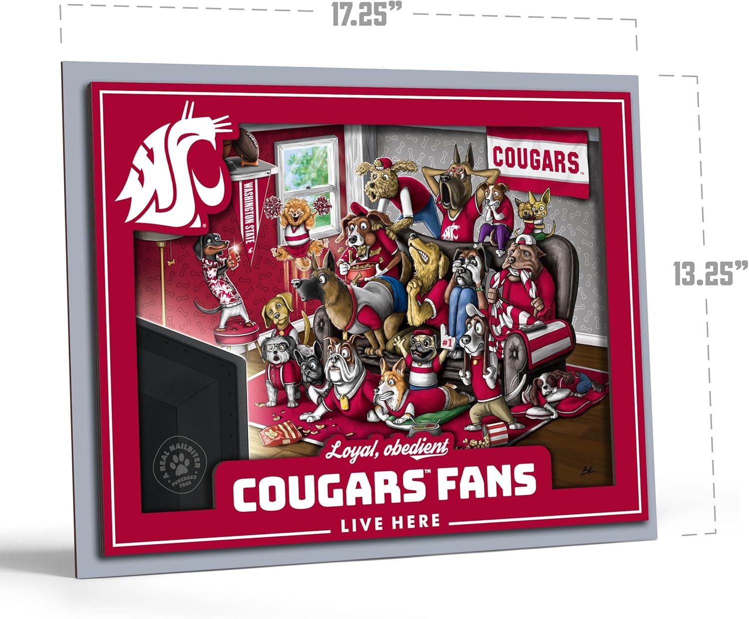 YouTheFan Officially-licensed NCAA Purebred 3D Wall Art – Humorous original hand-drawn cartoon artwork, multi-layer, funny gift, indoor team decor(Washington State Cougars)