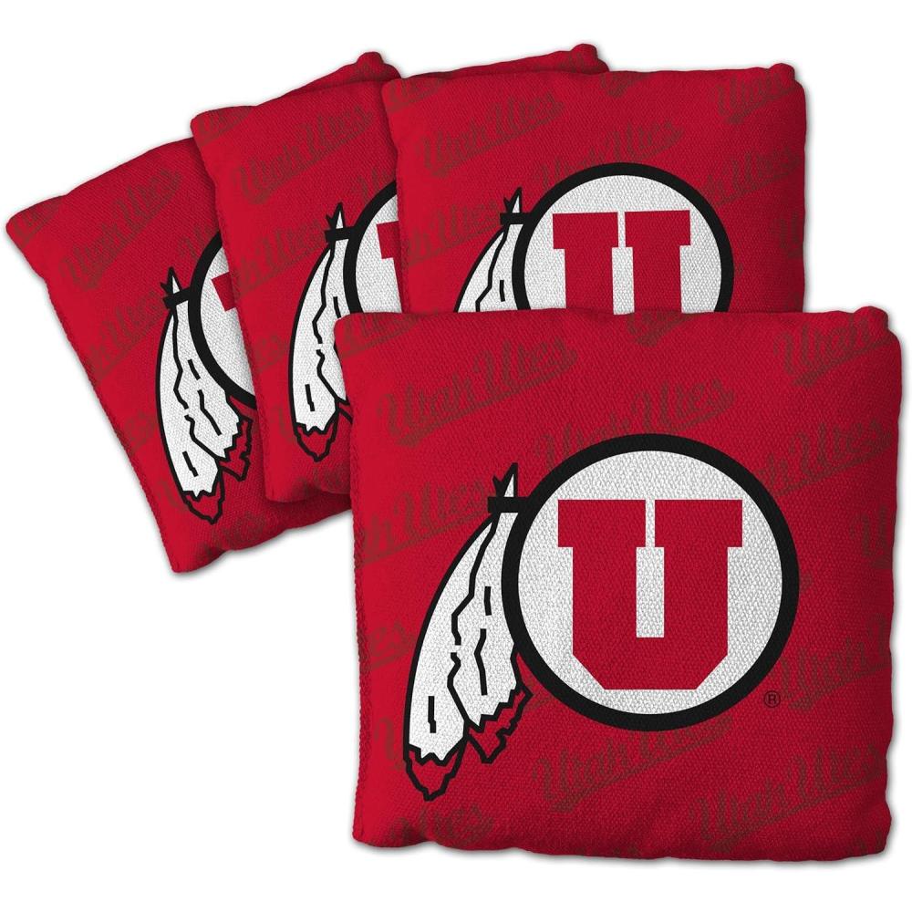 YouTheFan Officially-Licensed NCAA Set of 4 Cornhole Bags – All Weather Regulation 6” x 6” Size – 16oz Weight – Designed in USA(Utah Utes – Red)