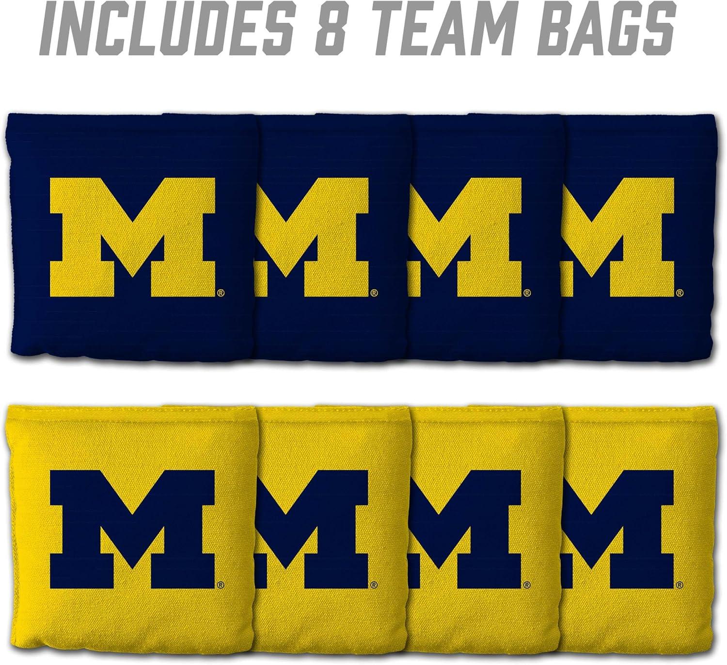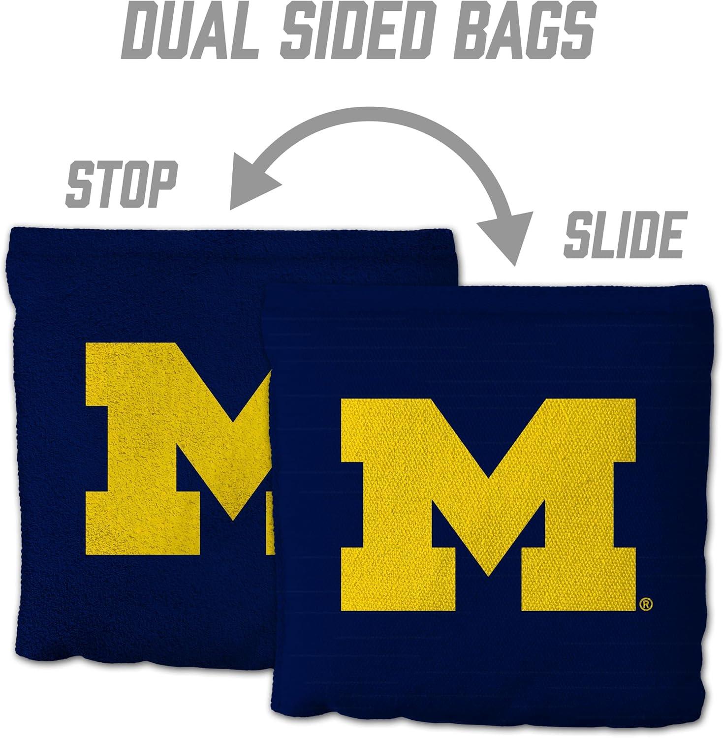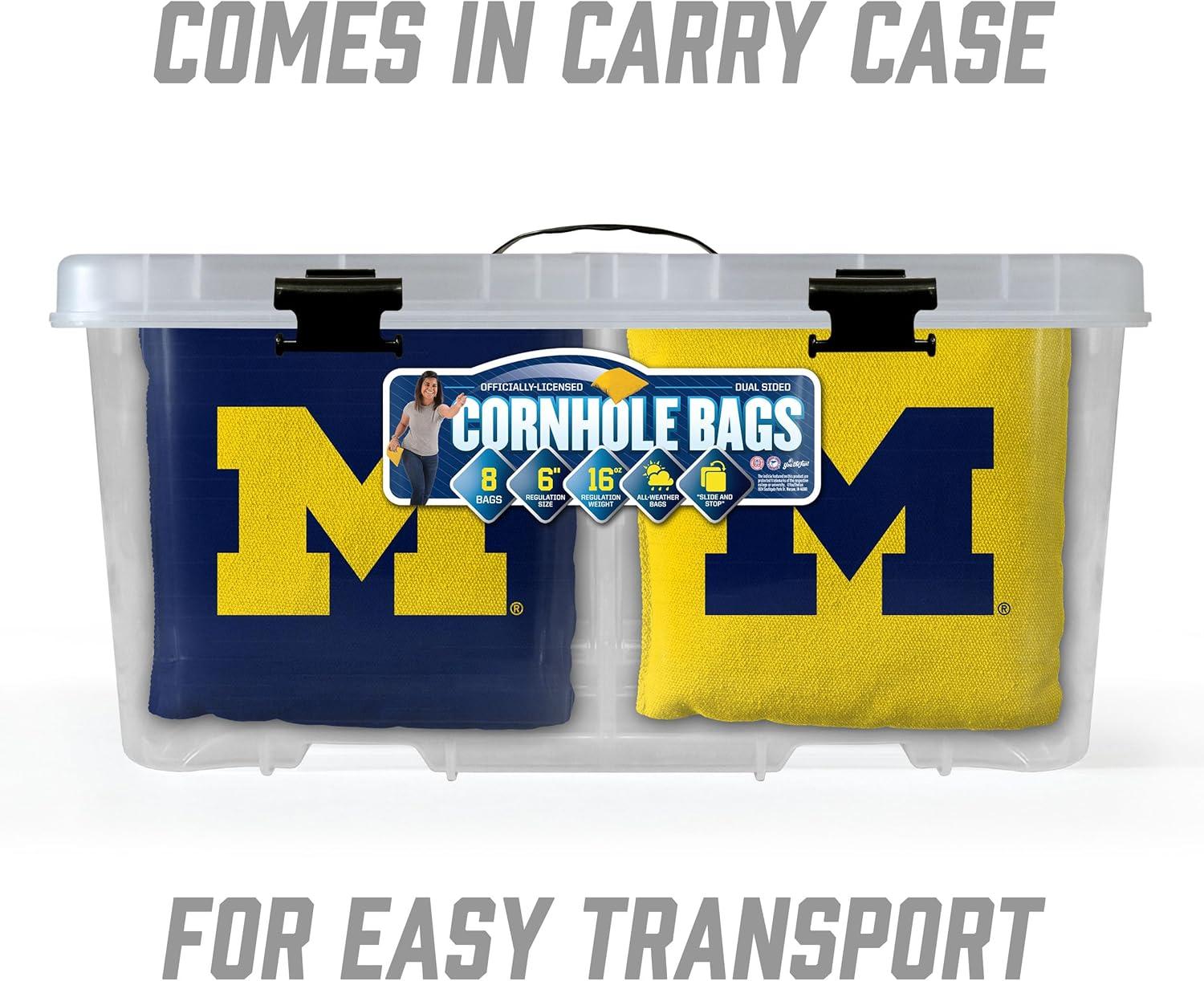 YouTheFan Officially-Licensed NCAA Set of 8 Cornhole Bags – All Weather Dual Sided Slide & Stop – Regulation Size with Carry case(Michigan Wolverines)