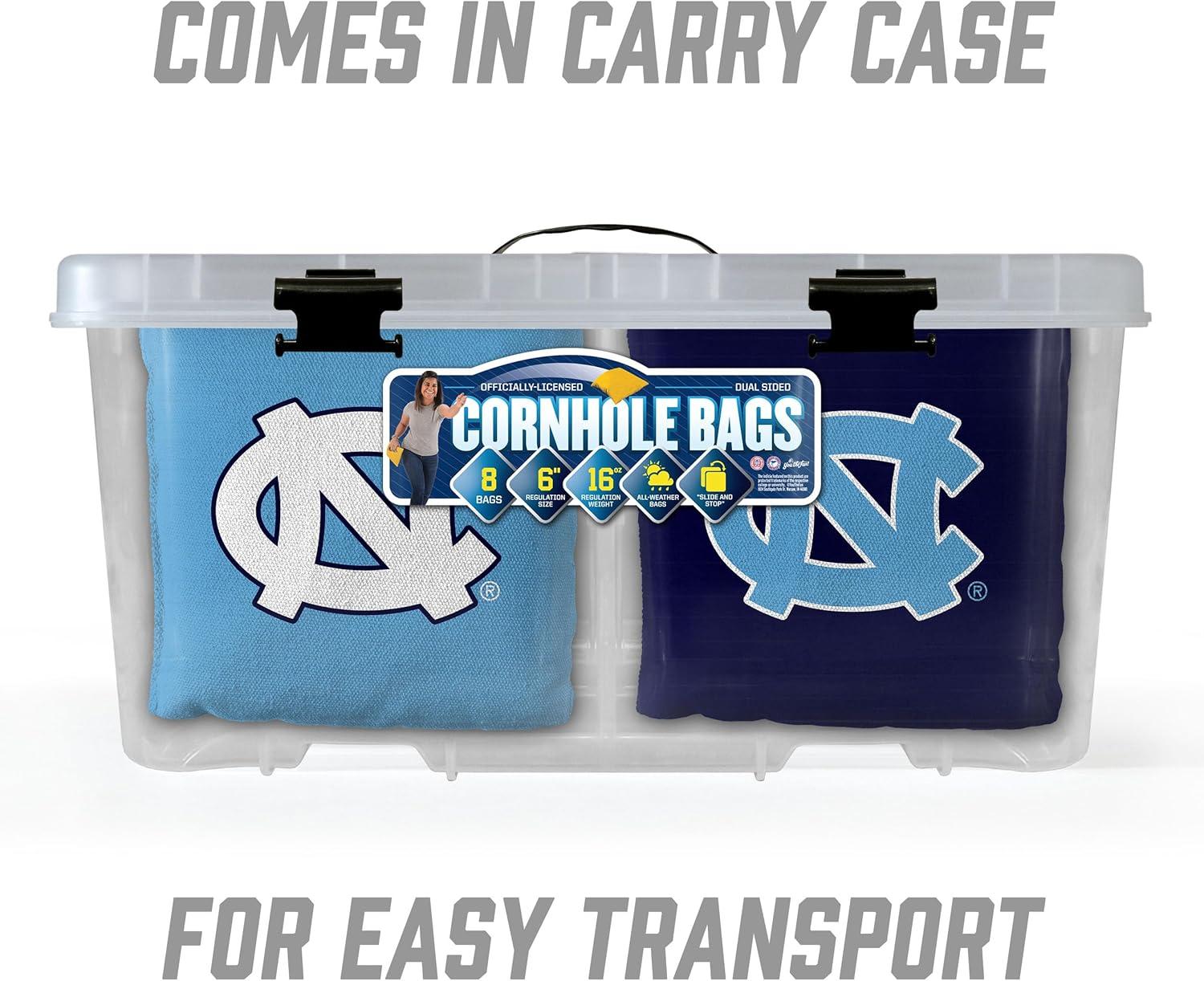 YouTheFan Officially-Licensed NCAA Set of 8 Cornhole Bags – All Weather Dual Sided Slide & Stop – Regulation Size with Carry case(North Carolina Tar Heels)