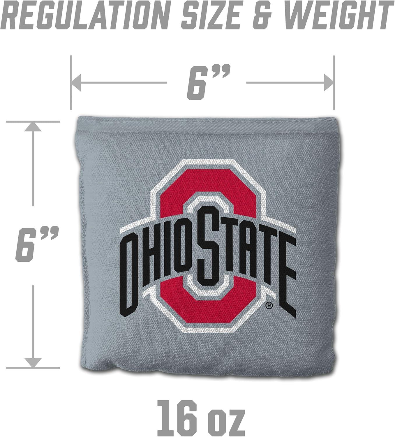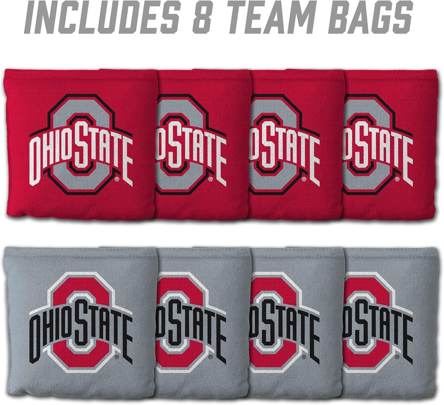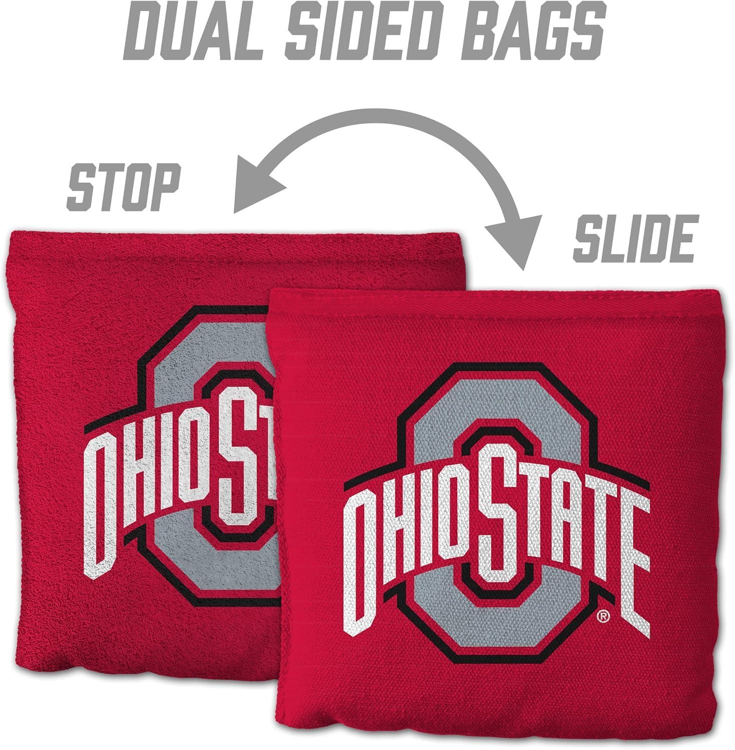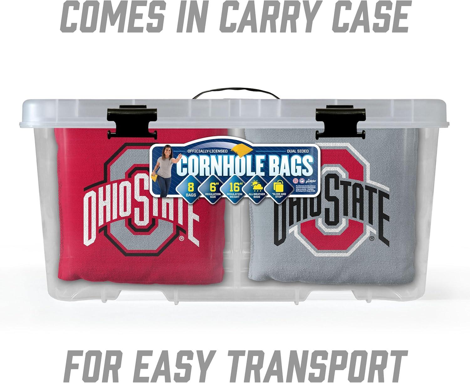 YouTheFan Officially-Licensed NCAA Set of 8 Cornhole Bags – All Weather Dual Sided Slide & Stop – Regulation Size with Carry case(Ohio State Buckeyes)