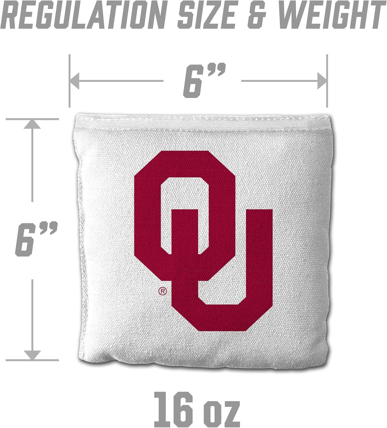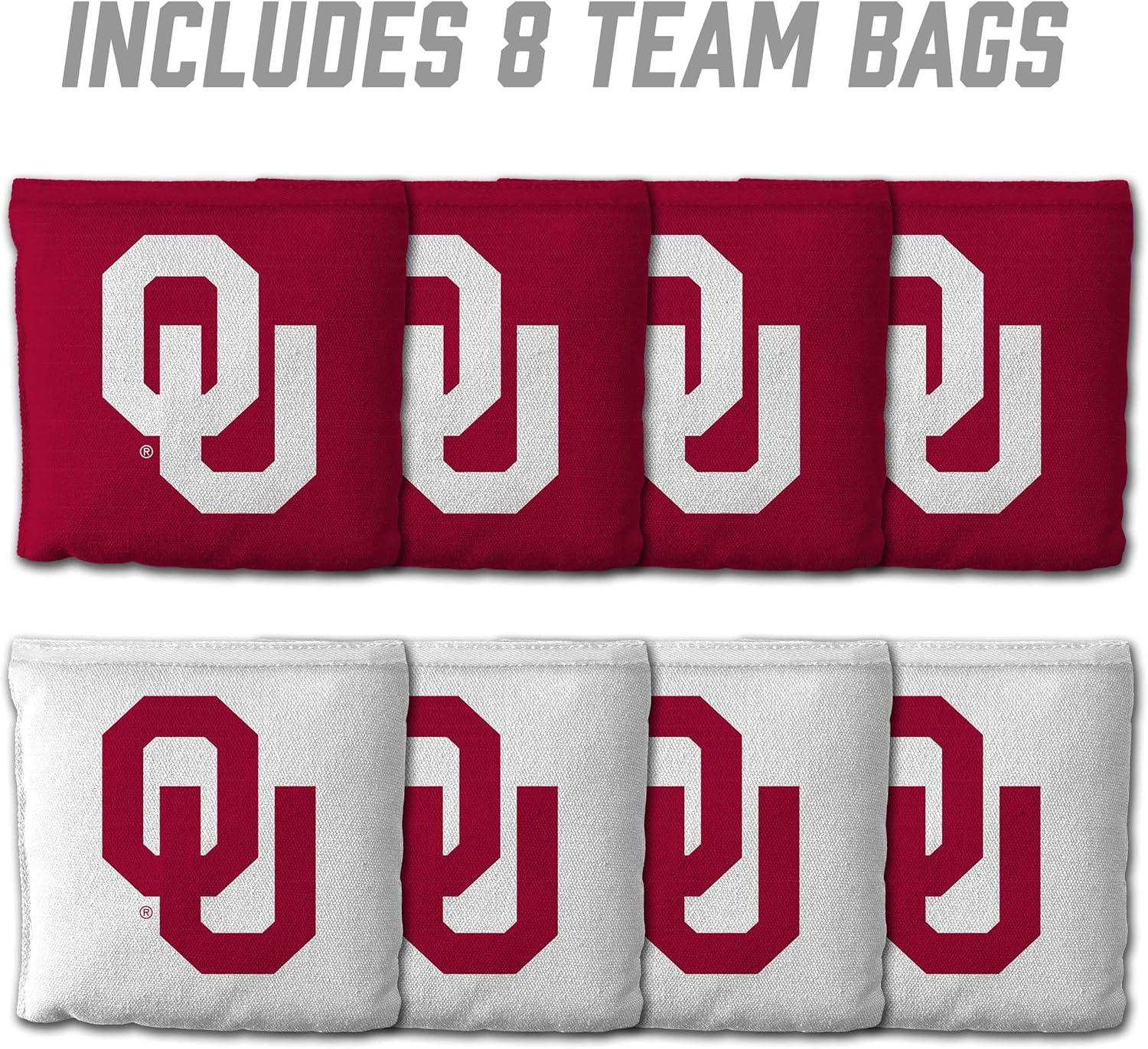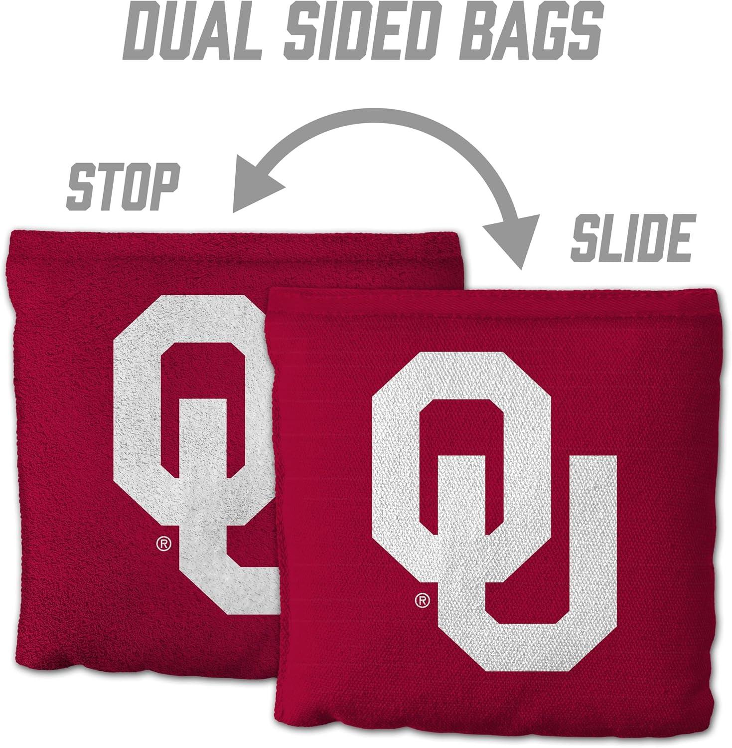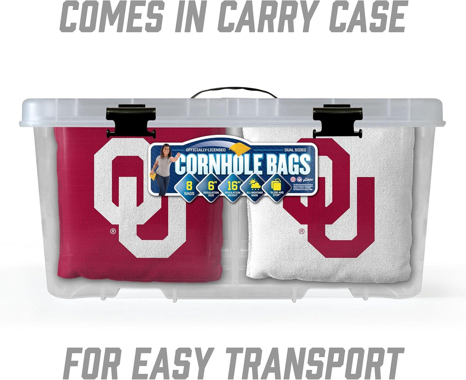 YouTheFan Officially-Licensed NCAA Set of 8 Cornhole Bags – All Weather Dual Sided Slide & Stop – Regulation Size with Carry case(Oklahoma Sooners)