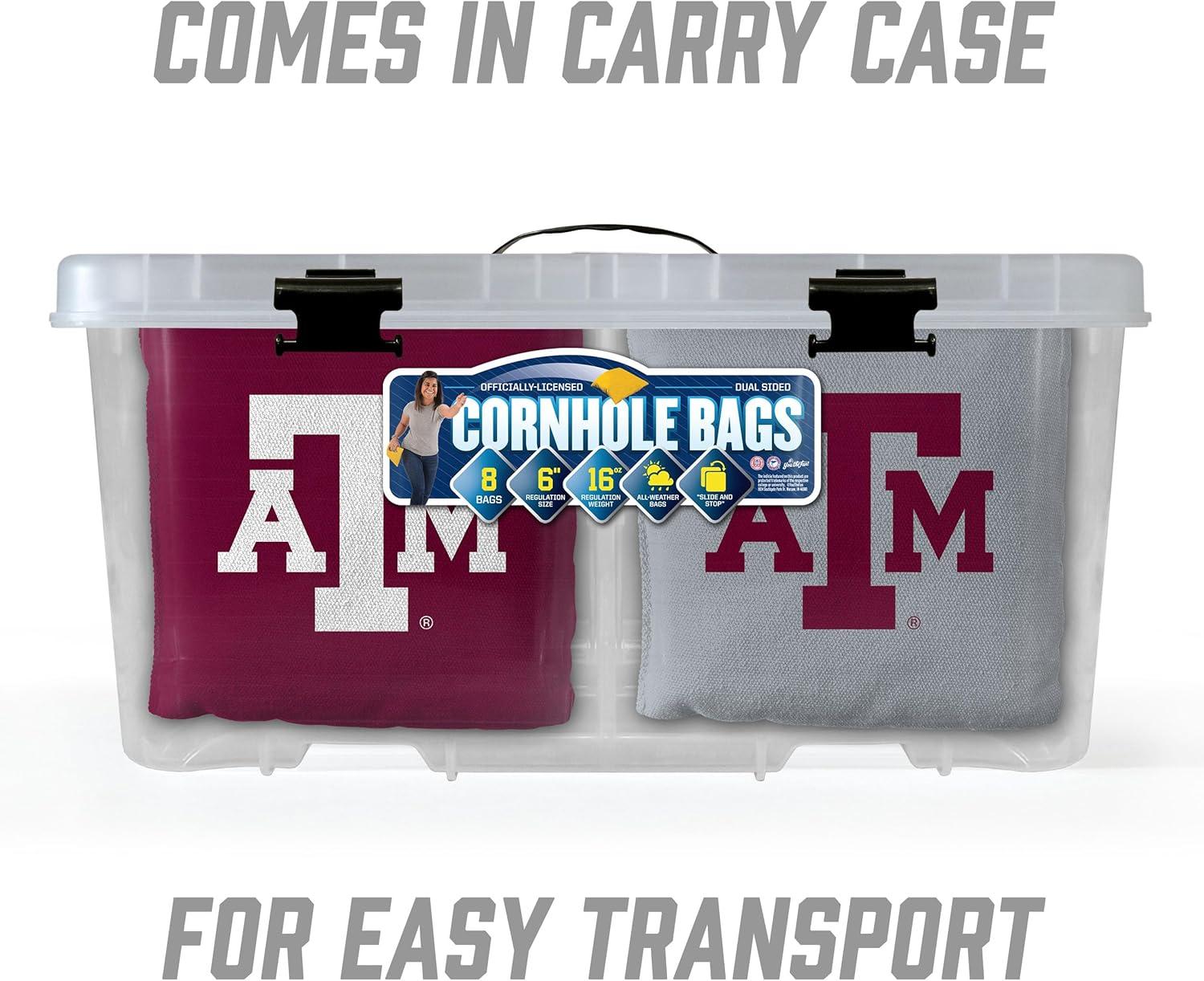 YouTheFan Officially-Licensed NCAA Set of 8 Cornhole Bags – All Weather Dual Sided Slide & Stop – Regulation Size with Carry case(Texas A&M Aggies)