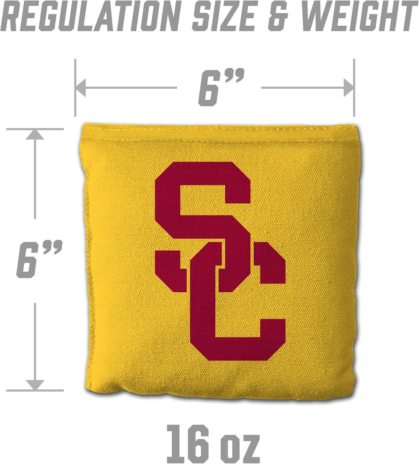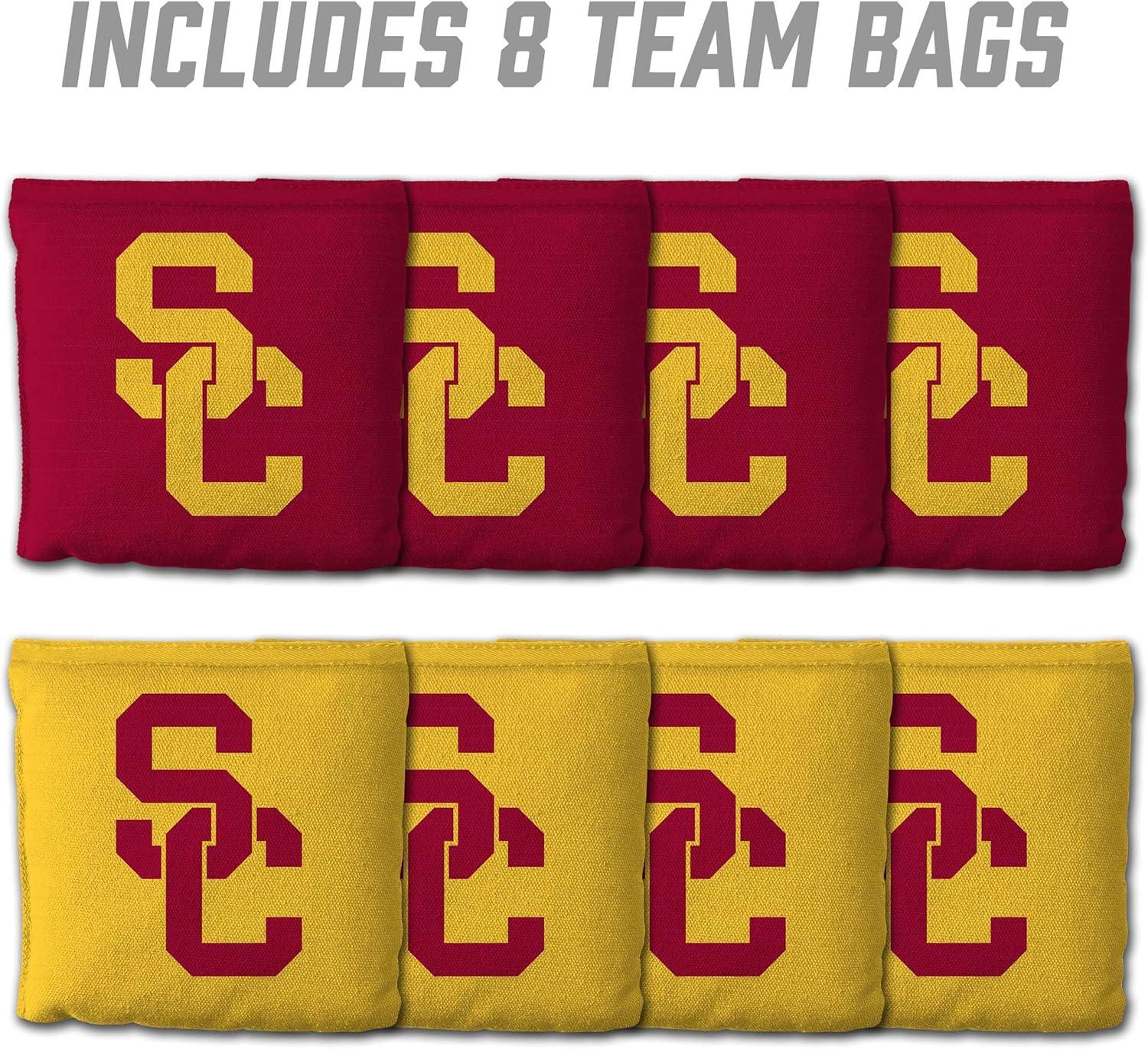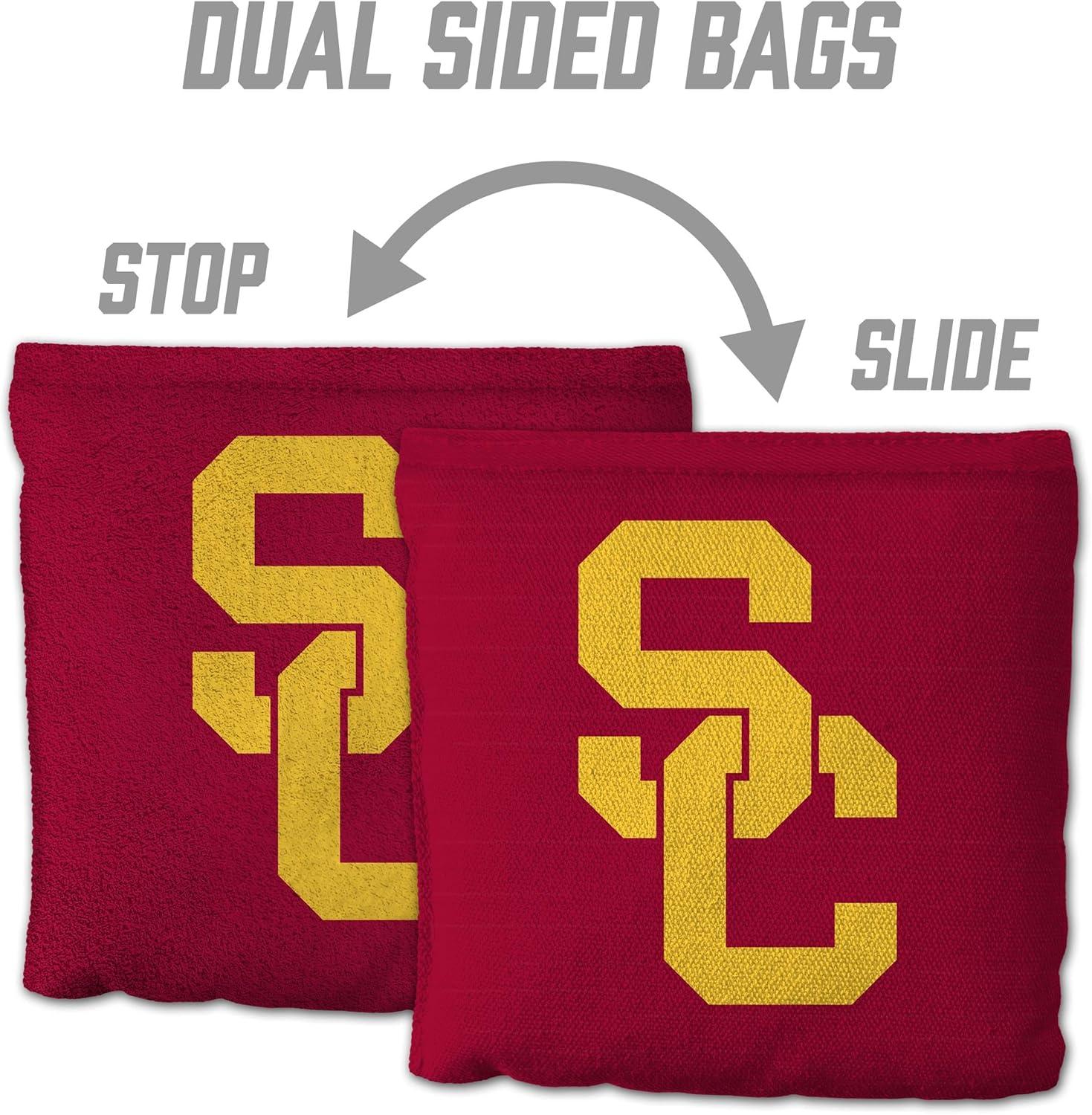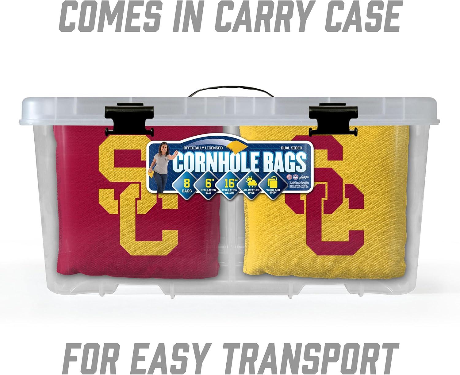 YouTheFan Officially-Licensed NCAA Set of 8 Cornhole Bags – All Weather Dual Sided Slide & Stop – Regulation Size with Carry case(USC Trojans)