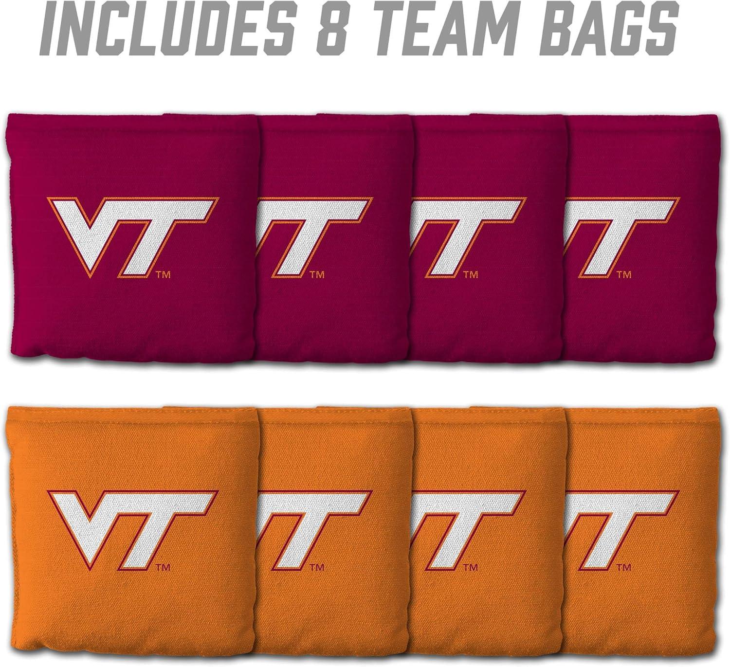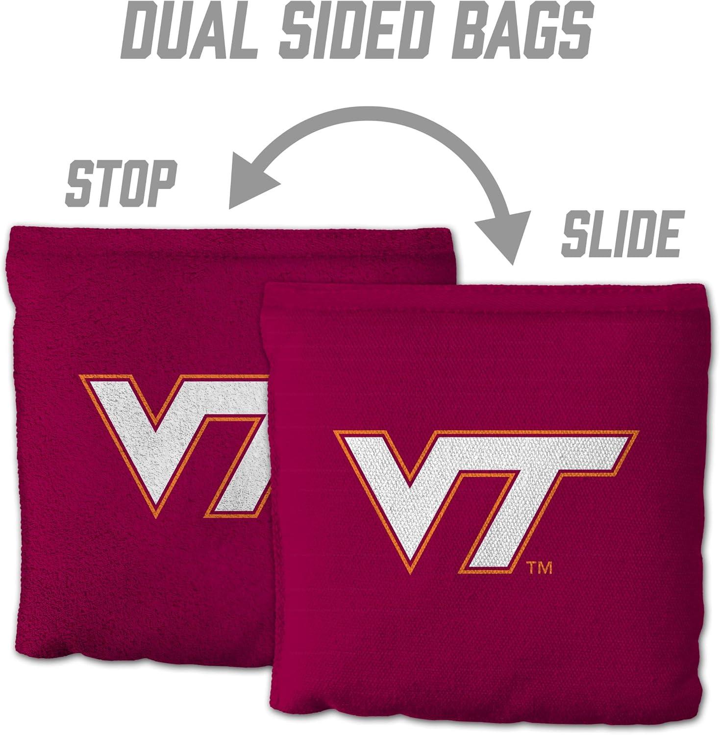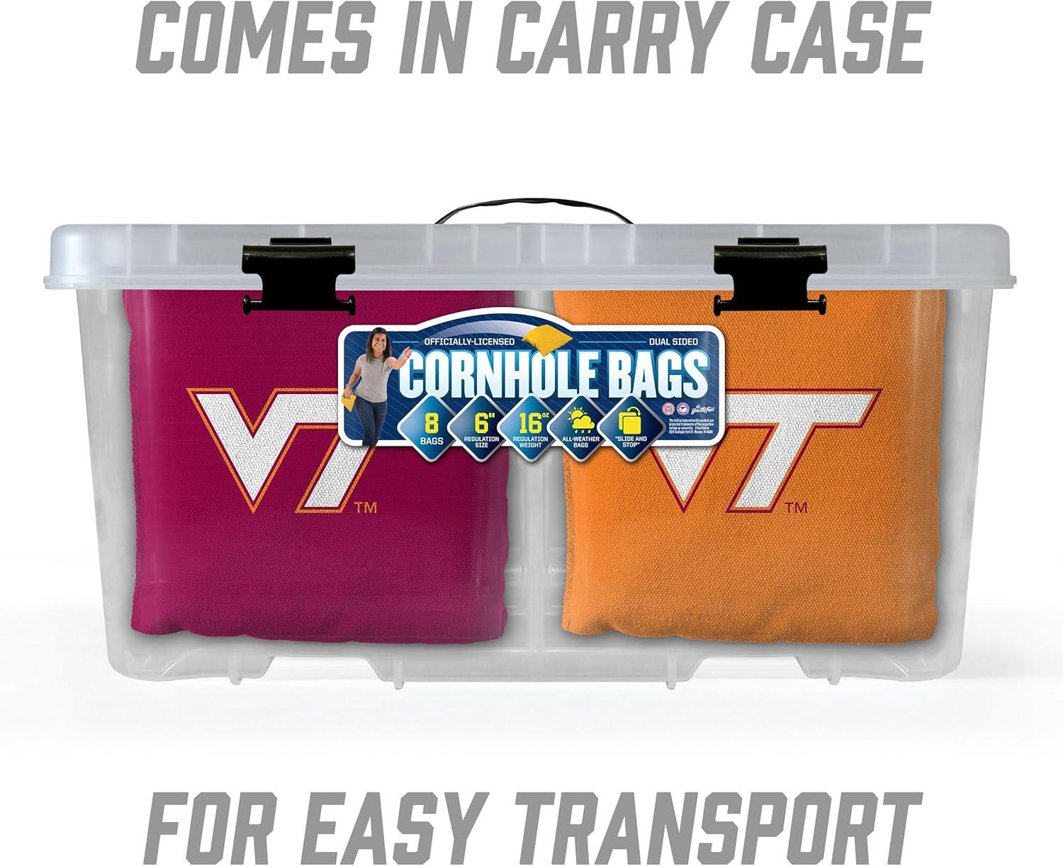 YouTheFan Officially-Licensed NCAA Set of 8 Cornhole Bags – All Weather Dual Sided Slide & Stop – Regulation Size with Carry case(Virginia Tech Hokies)