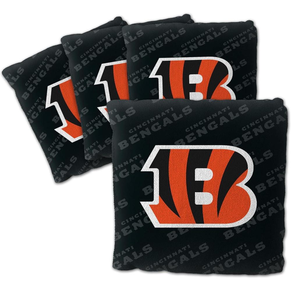 YouTheFan Officially-licensed NFL Set of 4 Cornhole Bags – All Weather regulation 6” x 6” size – Designed in USA(Cincinnati Bengals – Black)
