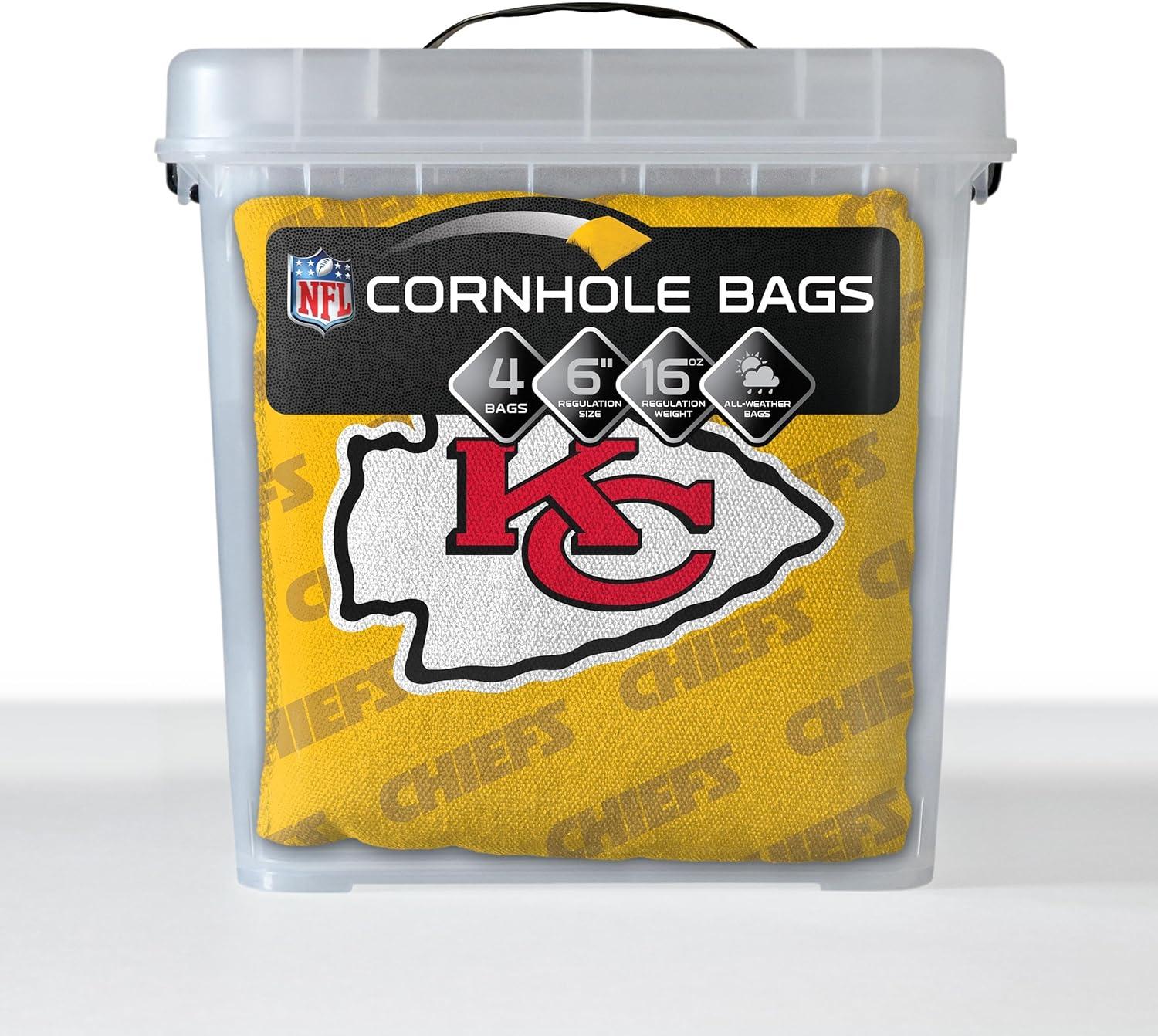 YouTheFan Officially-licensed NFL Set of 4 Cornhole Bags – All Weather regulation 6” x 6” size – Designed in USA(Kansas City Chiefs – Yellow)