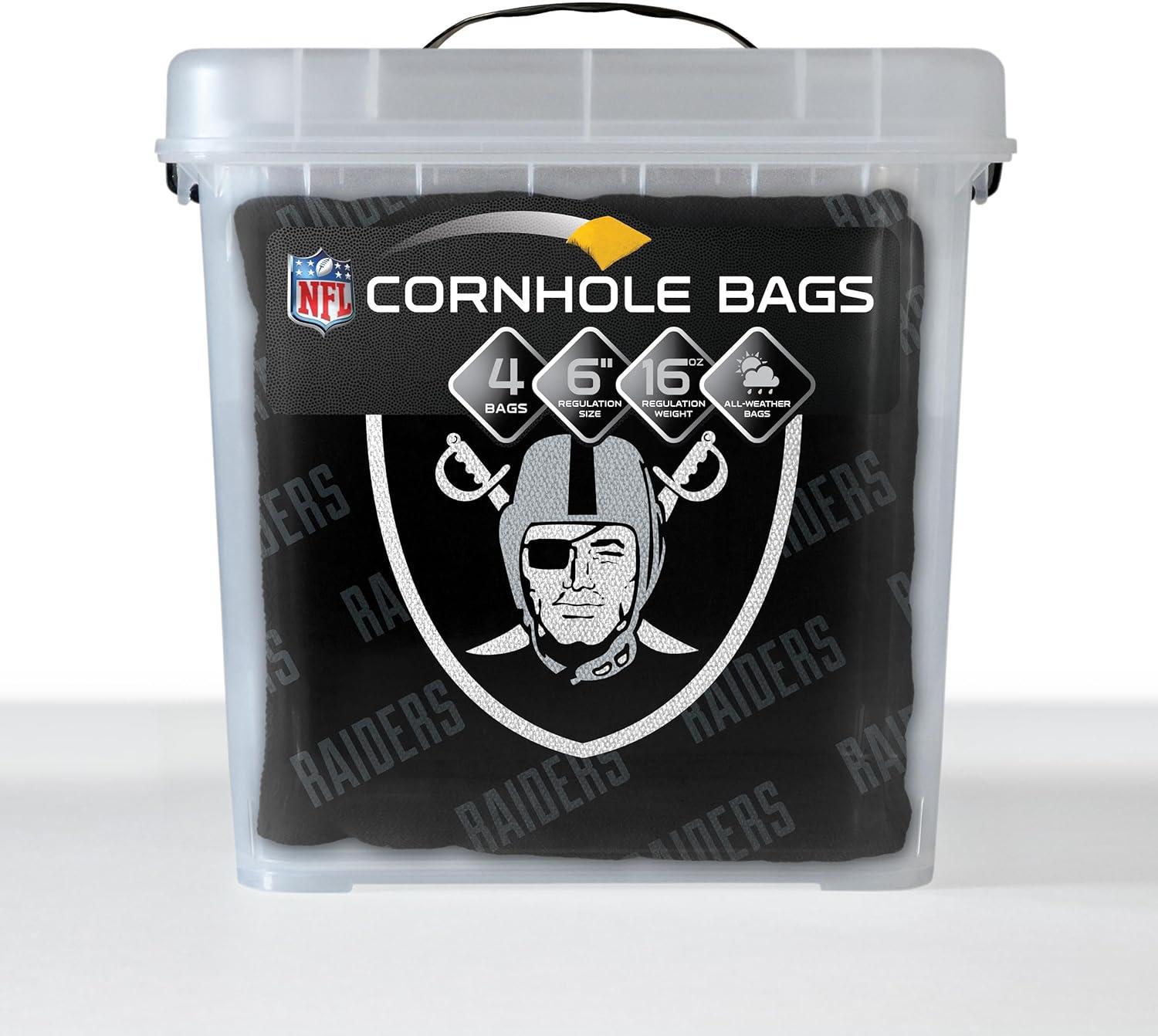 YouTheFan Officially-licensed NFL Set of 4 Cornhole Bags – All Weather regulation 6” x 6” size – Designed in USA(Las Vegas Raiders – Black)