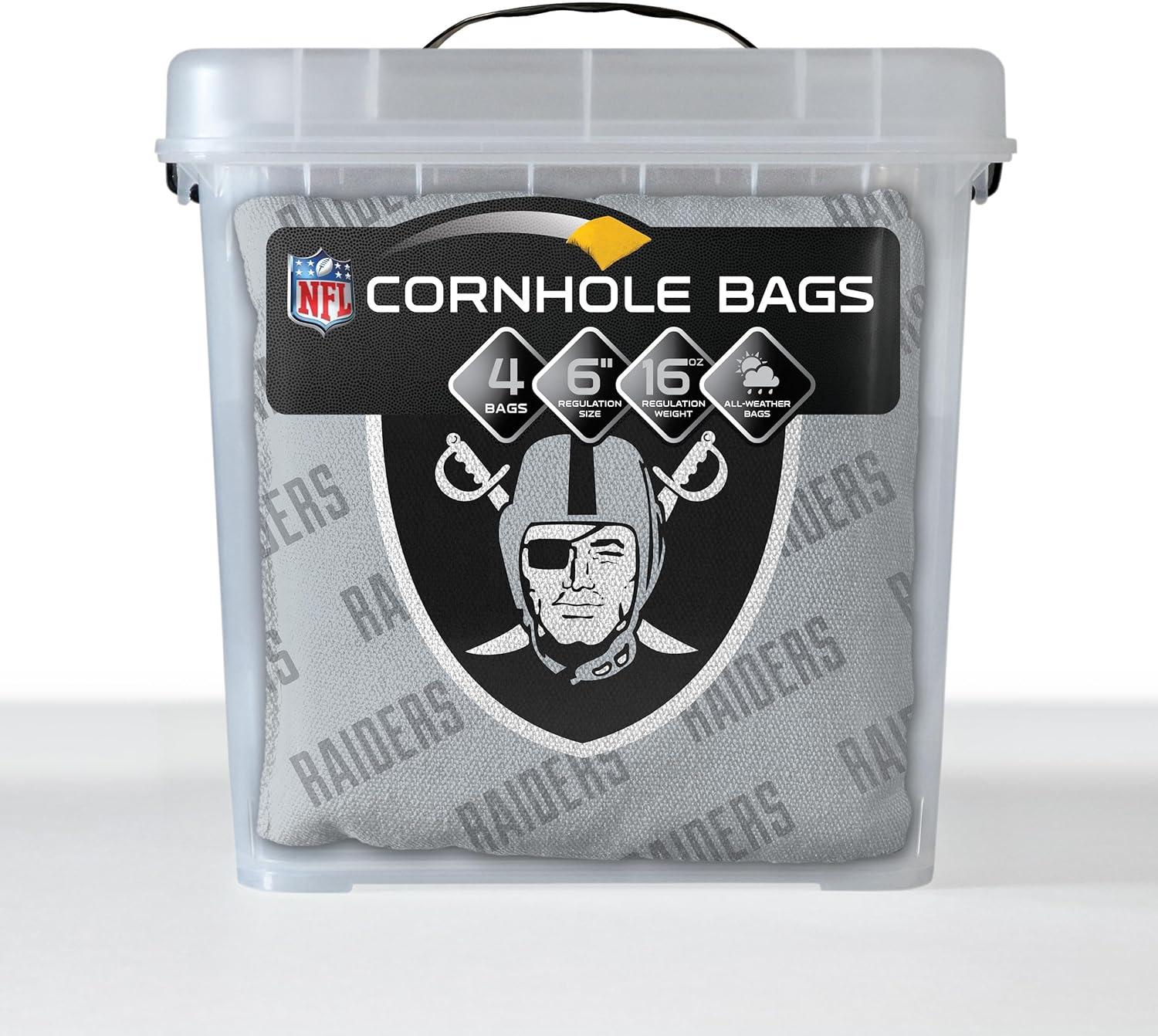 YouTheFan Officially-licensed NFL Set of 4 Cornhole Bags – All Weather regulation 6” x 6” size – Designed in USA(Las Vegas Raiders – Grey)