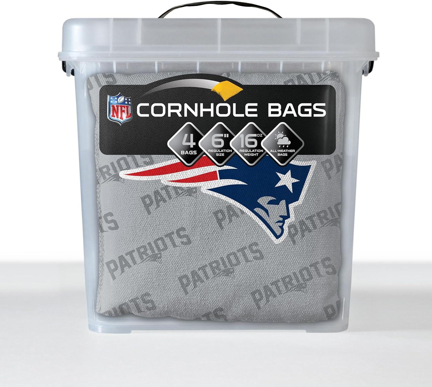 YouTheFan Officially-licensed NFL Set of 4 Cornhole Bags – All Weather regulation 6” x 6” size – Designed in USA(New England Patriots – Grey)