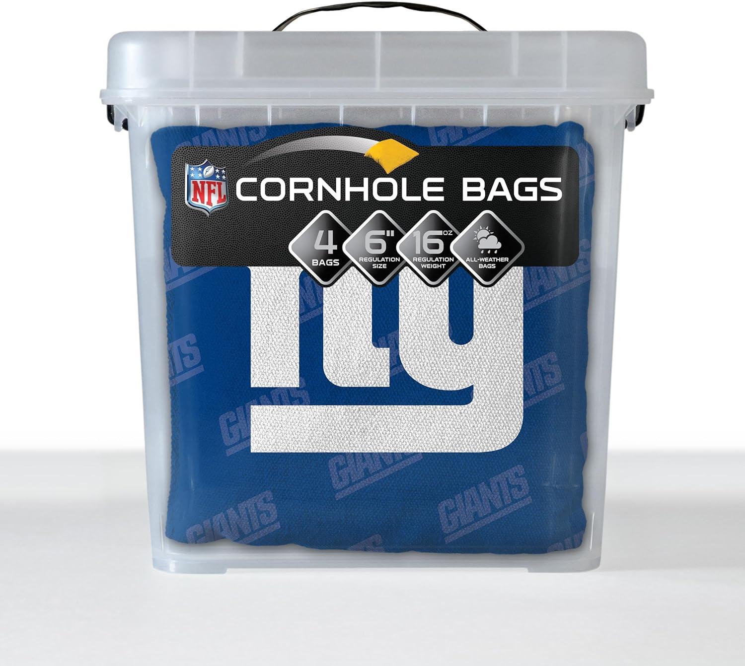 YouTheFan Officially-licensed NFL Set of 4 Cornhole Bags – All Weather regulation 6” x 6” size – Designed in USA(New York Giants – Blue)