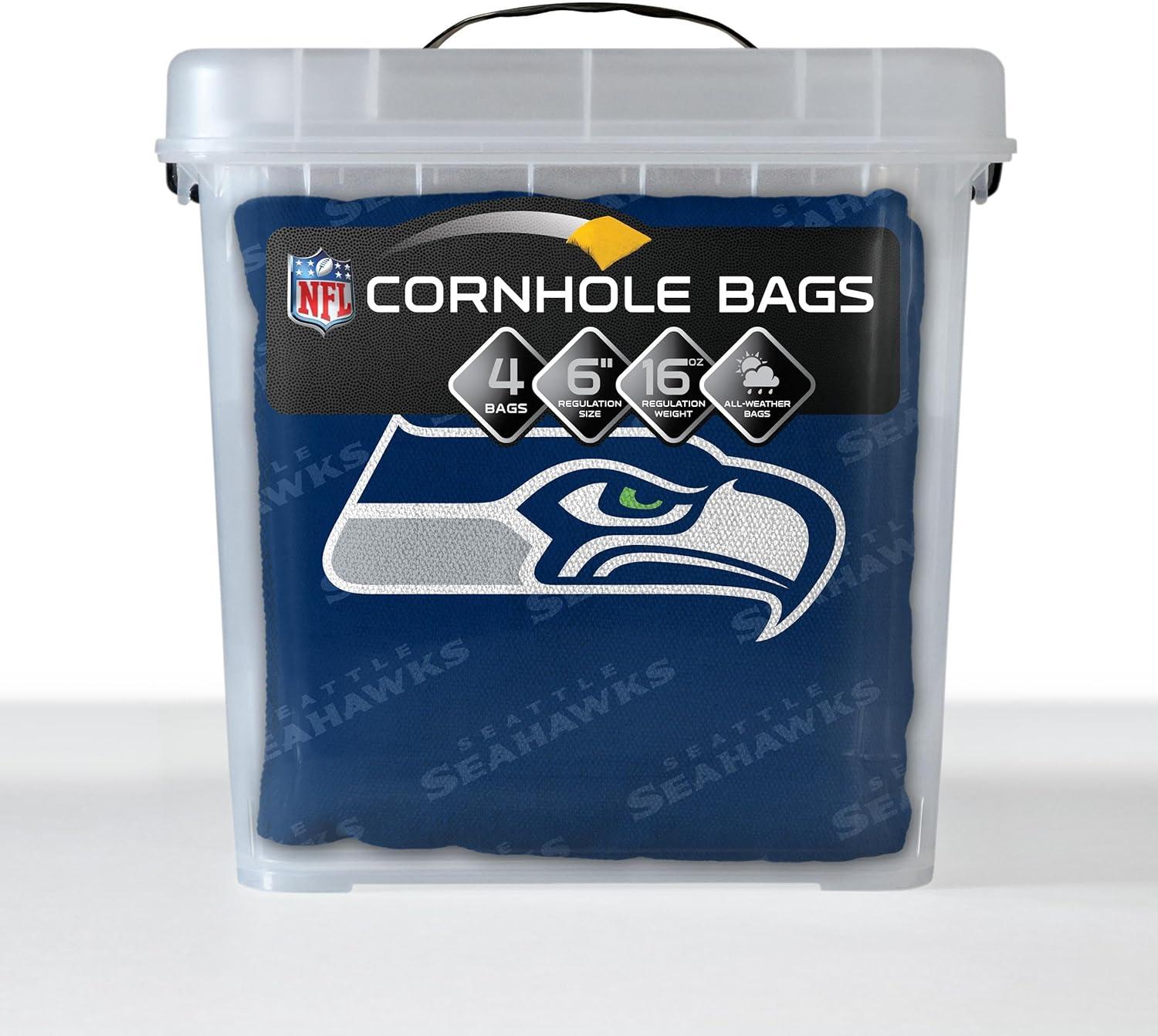 YouTheFan Officially-licensed NFL Set of 4 Cornhole Bags – All Weather regulation 6” x 6” size – Designed in USA(Seattle Seahawks – Blue)