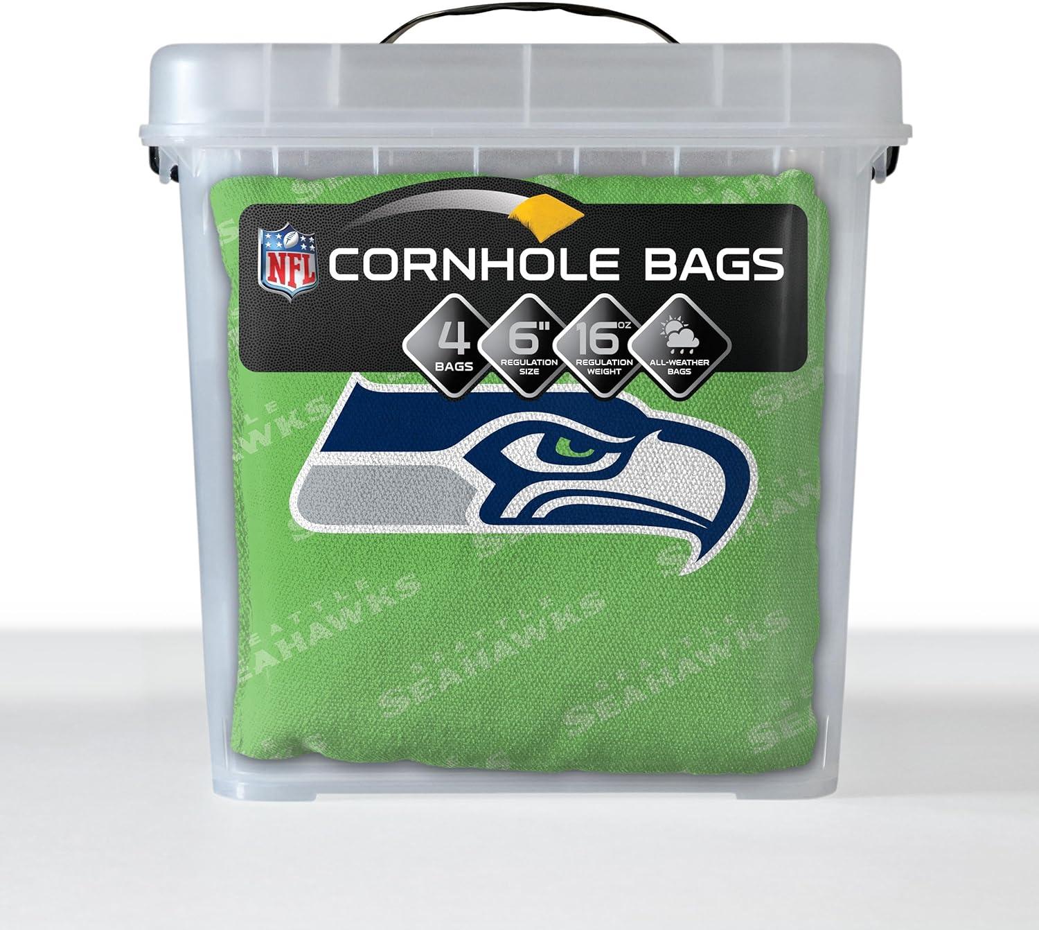 YouTheFan Officially-licensed NFL Set of 4 Cornhole Bags – All Weather regulation 6” x 6” size – Designed in USA(Seattle Seahawks – Green)