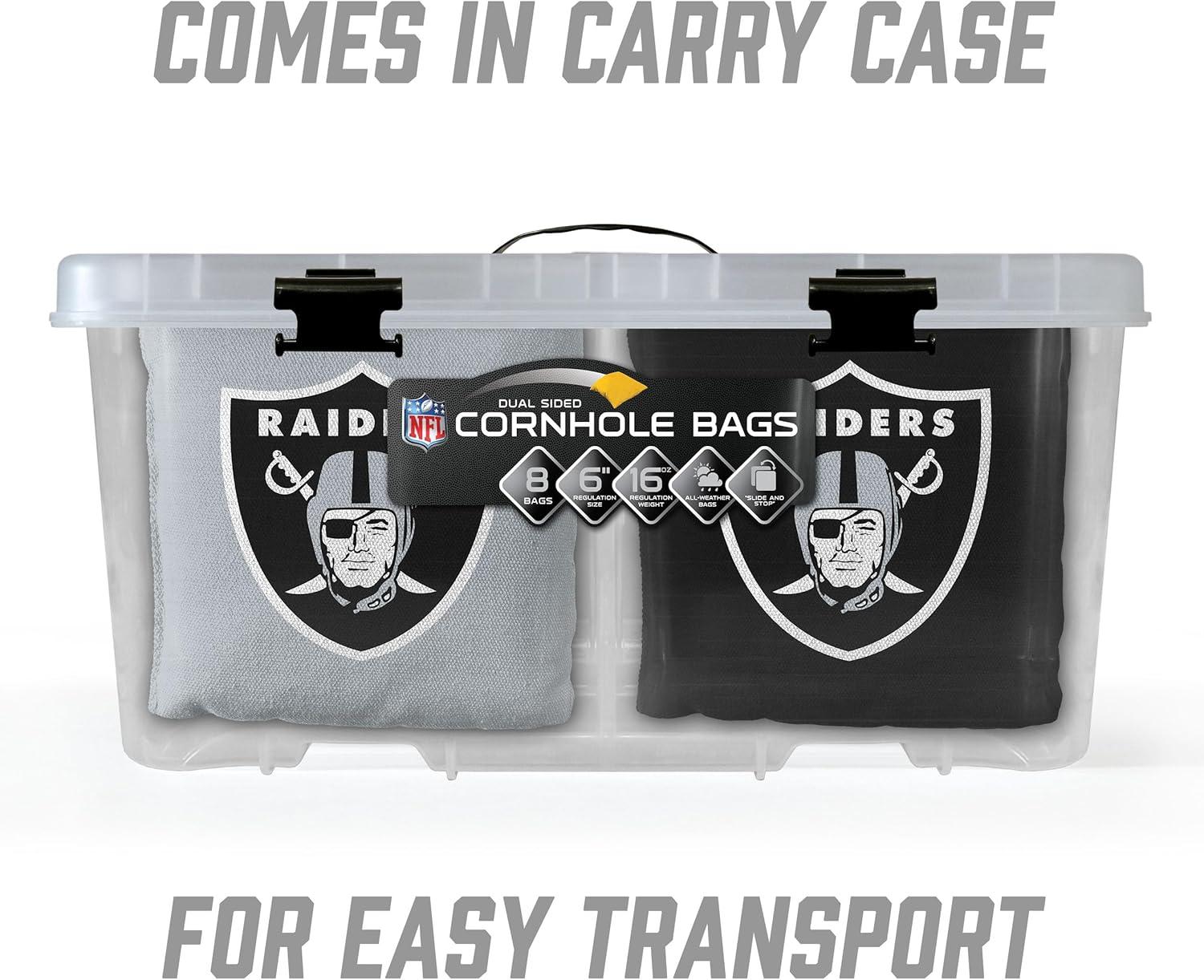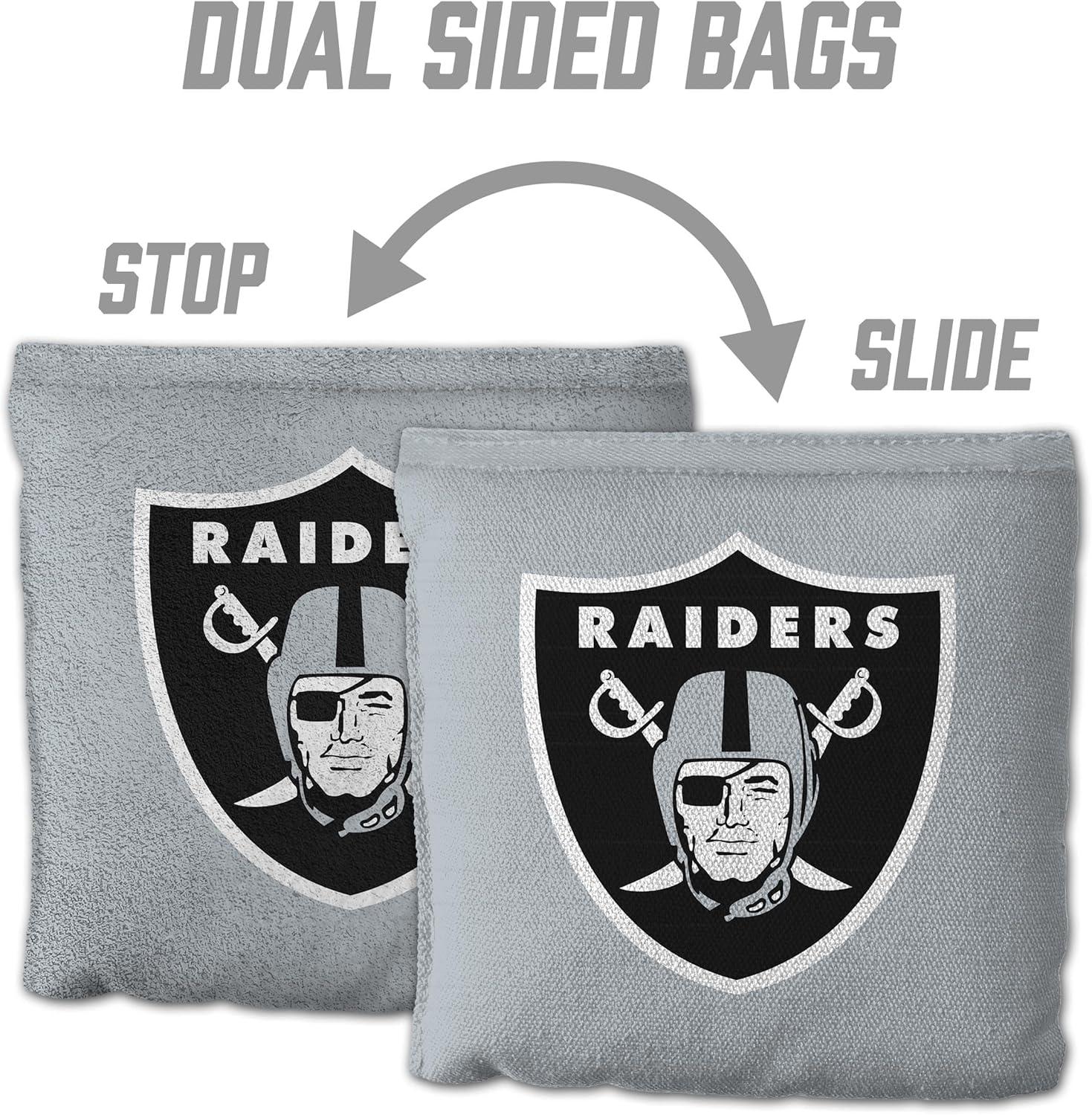 YouTheFan Officially-licensed NFL Set of 8 Cornhole Bags – All Weather Dual Sided Slide & Stop – regulation size(Las Vegas Raiders)