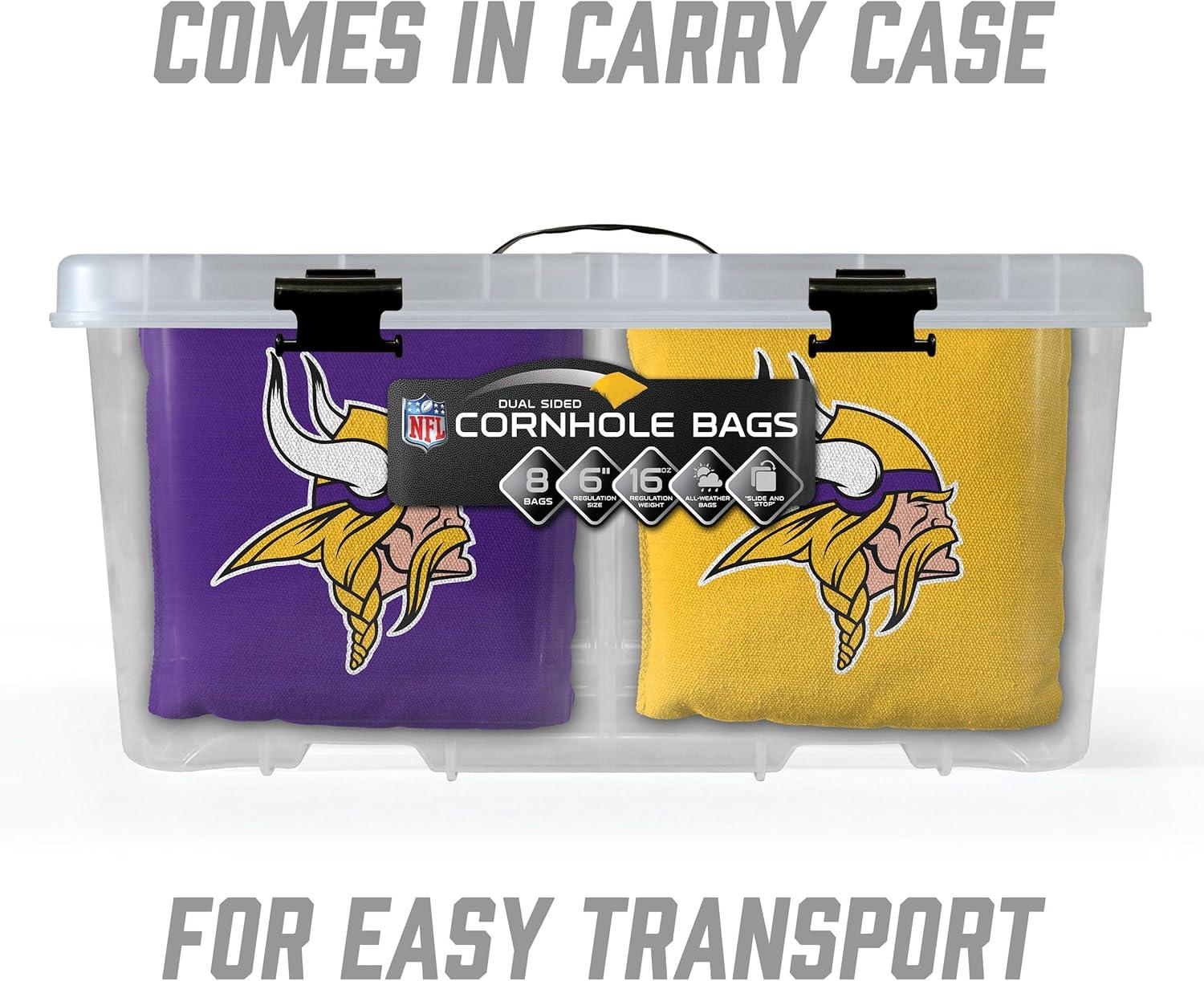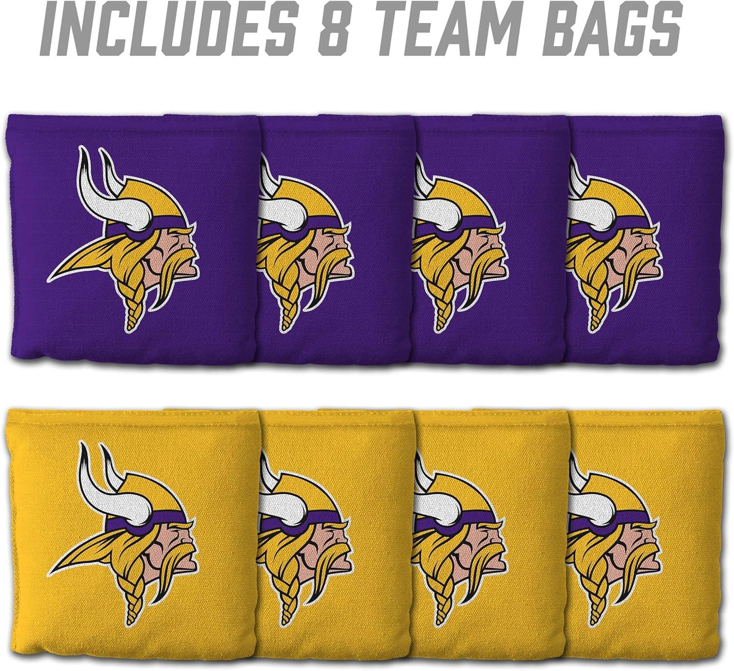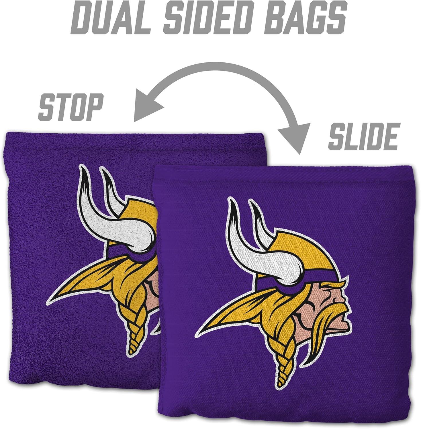 YouTheFan Officially-licensed NFL Set of 8 Cornhole Bags – All Weather Dual Sided Slide & Stop – regulation size(Minnesota Vikings)