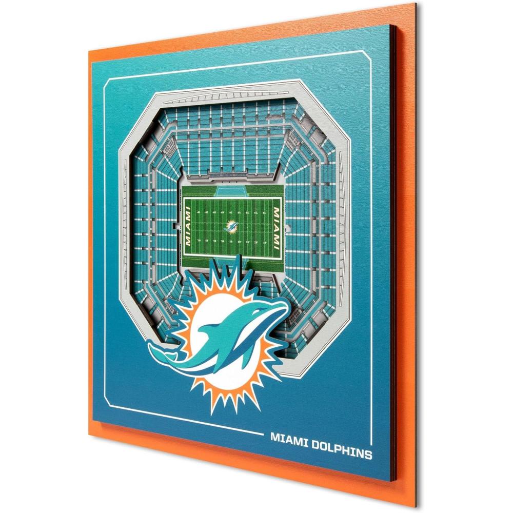 YouTheFan Officially-licensed NFL Stadium Series 3D Wall Art – multi-layer team stadium replica, detailed sports fan gift, indoor decor(Miami Dolphins)