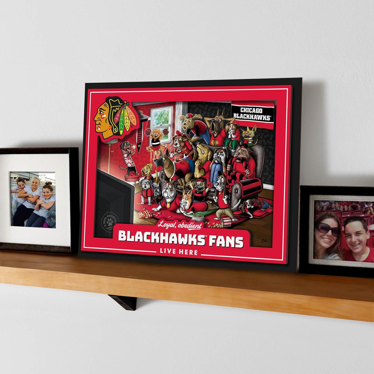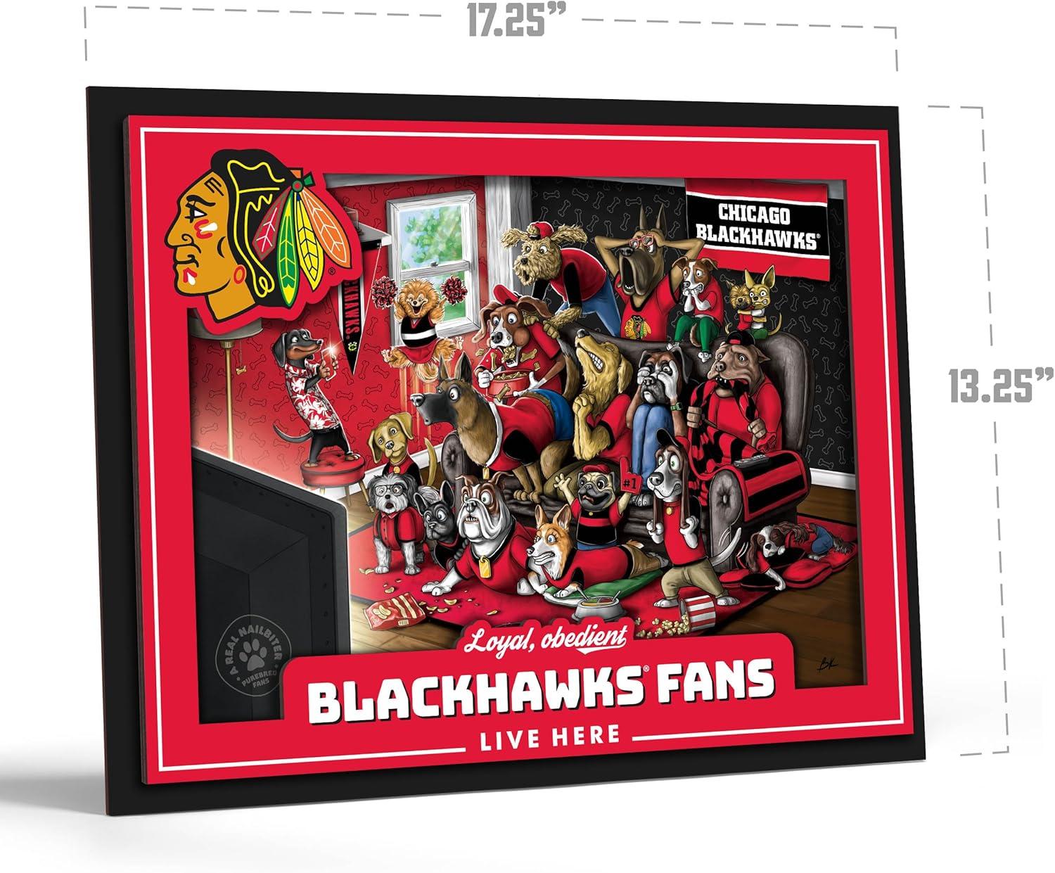 YouTheFan Officially-licensed NHL Purebred 3D Wall Art – Humorous original hand-drawn cartoon artwork, multi-layer, funny gift, indoor team decor(Chicago Blackhawks)