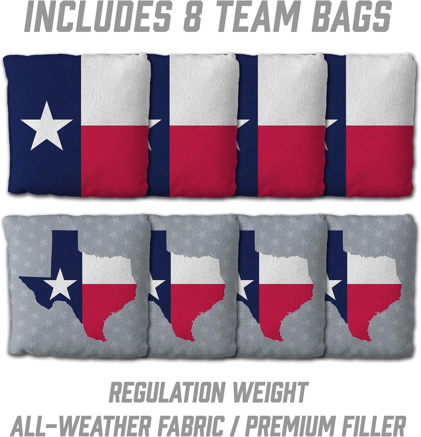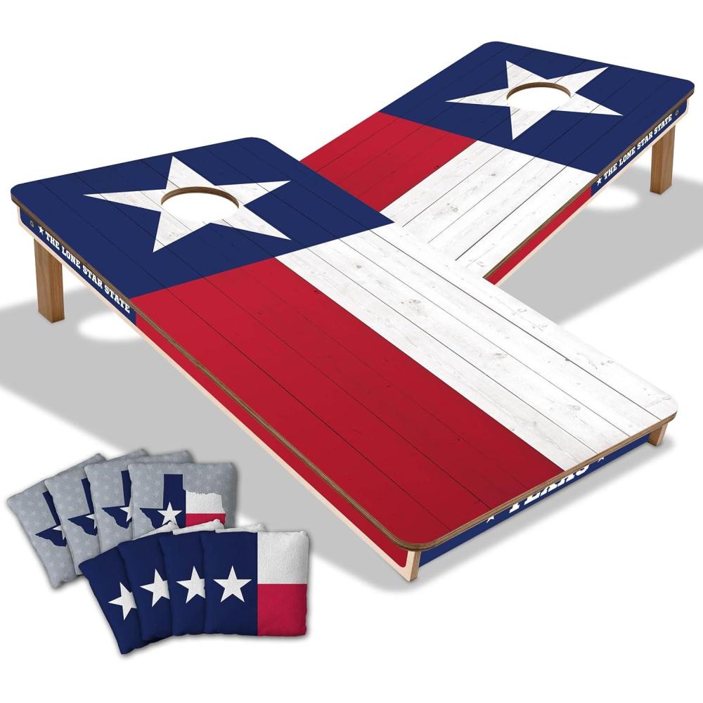 Includes 2 boards and 8 regulation-size, 6” x 6”, 16 oz bags (in 2 color versions)